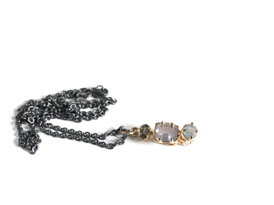 14K SMOKEY QUARTZ & SPESSARTINE GARNET & RUTILATED QUARTZ