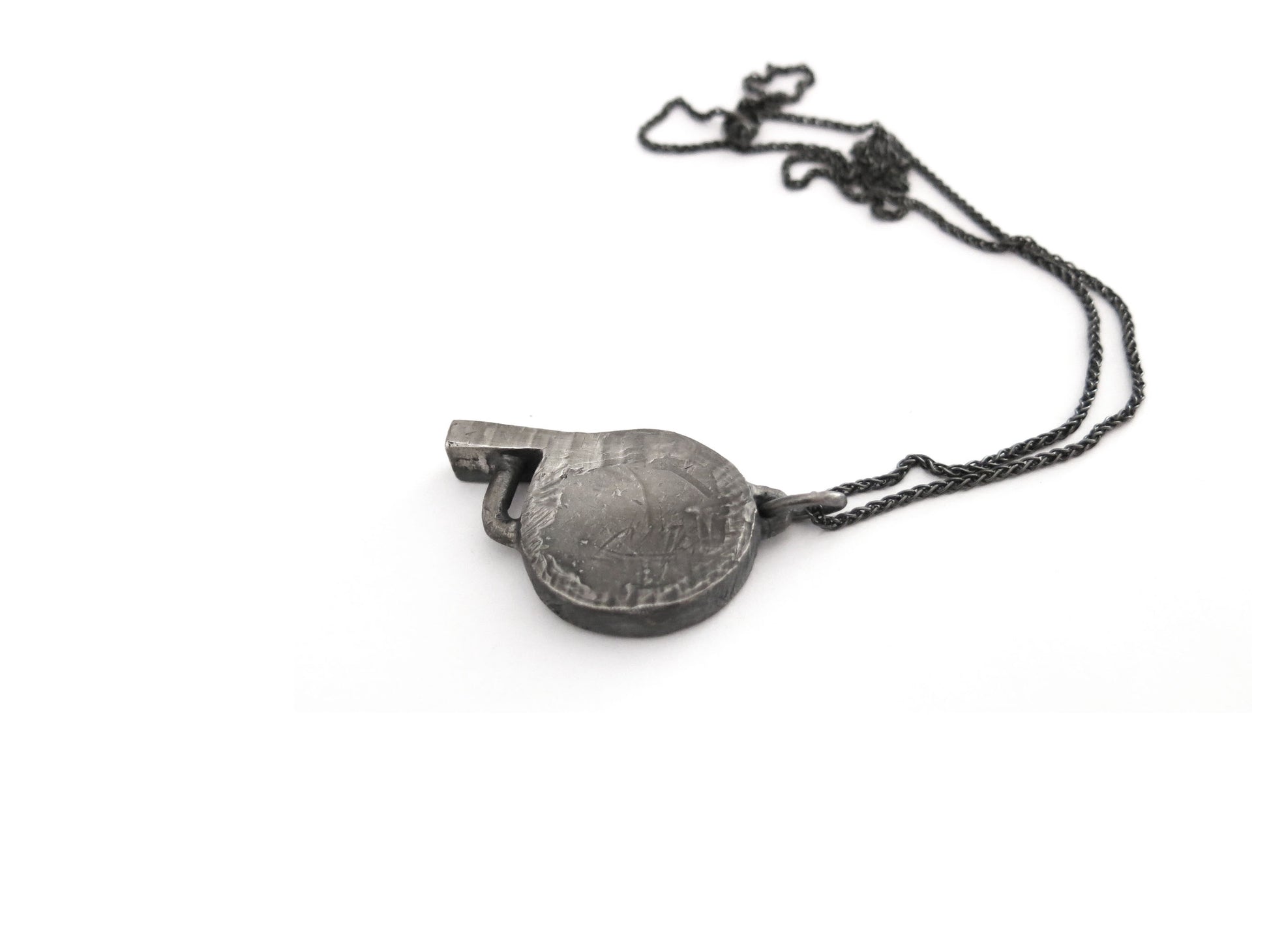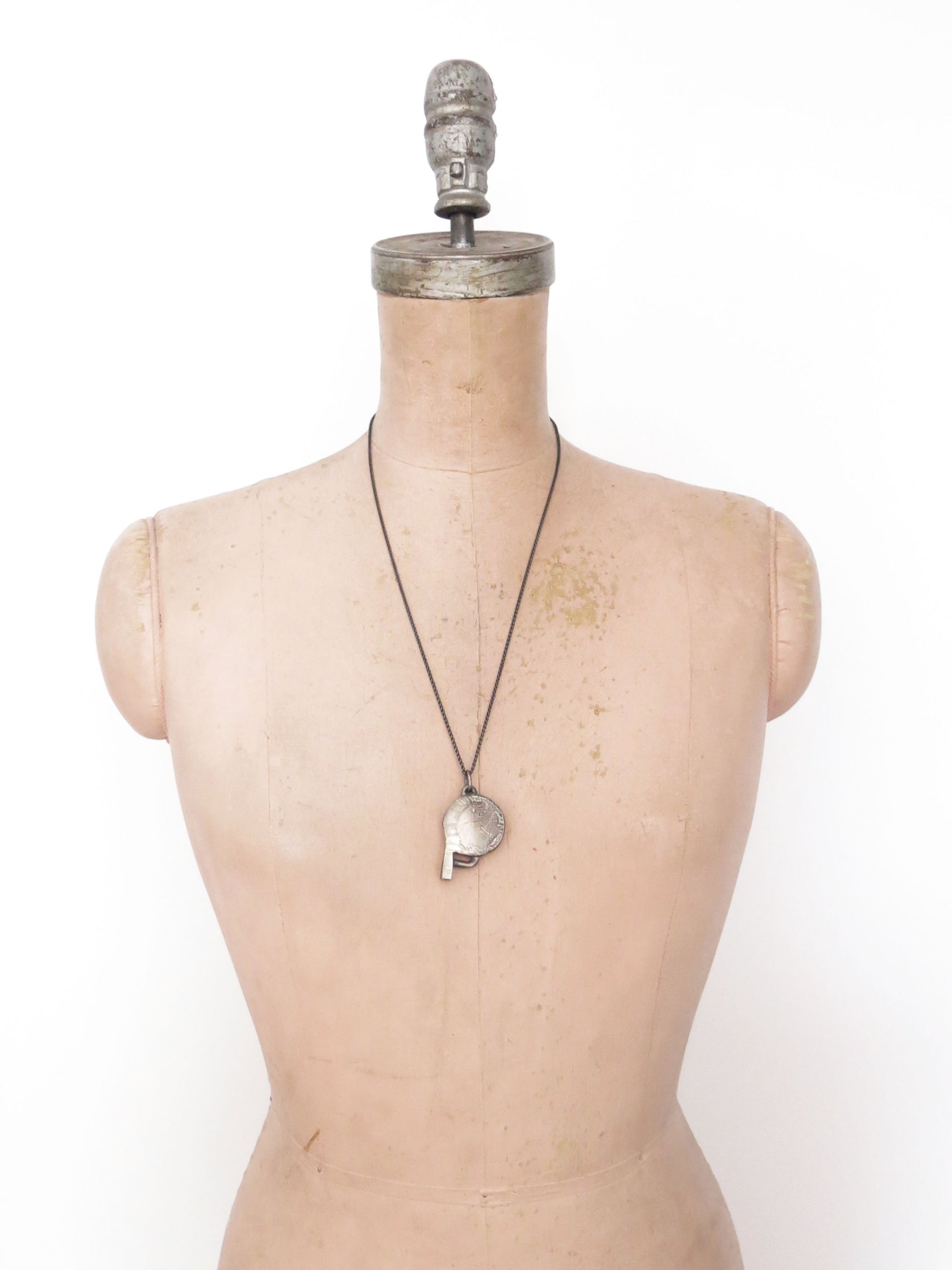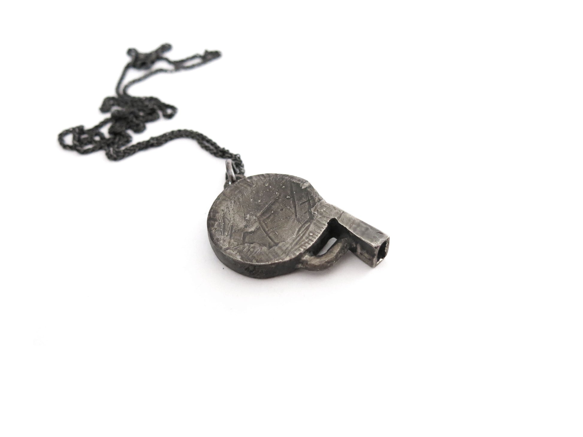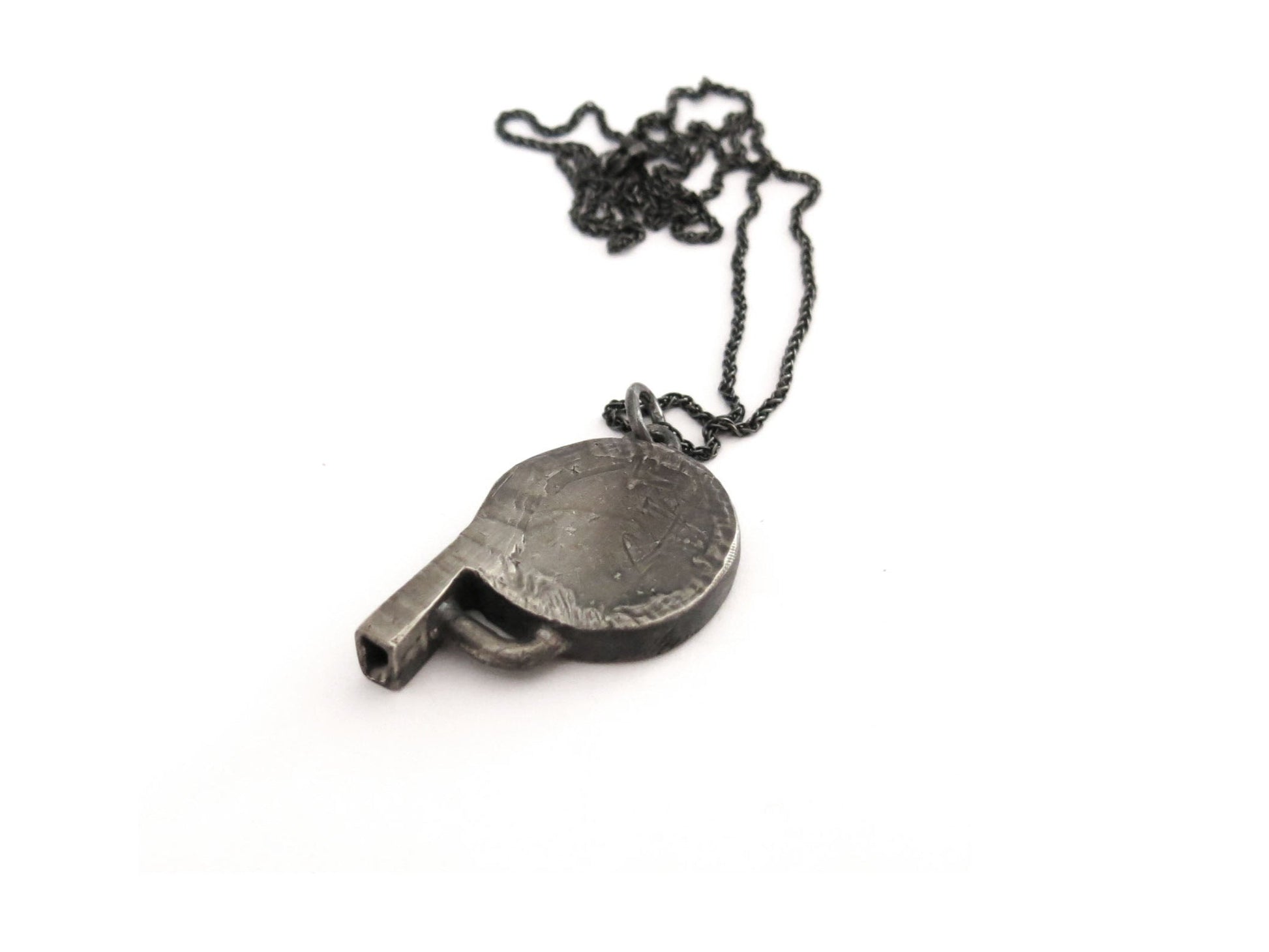 sculpted in wax and cast in solid sterling silver with a textured & oxidized finish. oxidized silver will evolve and become brighter and shinier with wear. comes on a 24" sterling silver chain.
