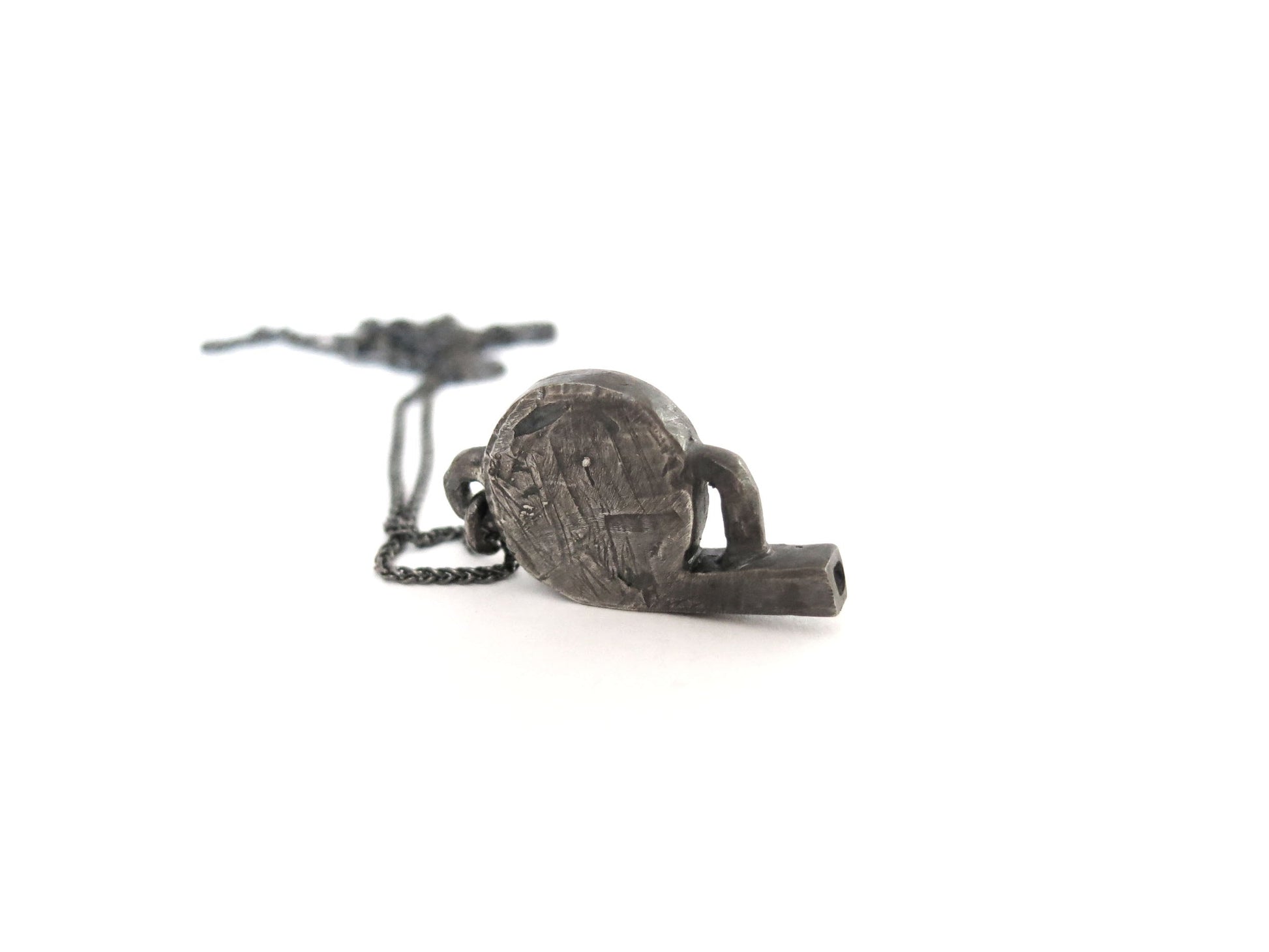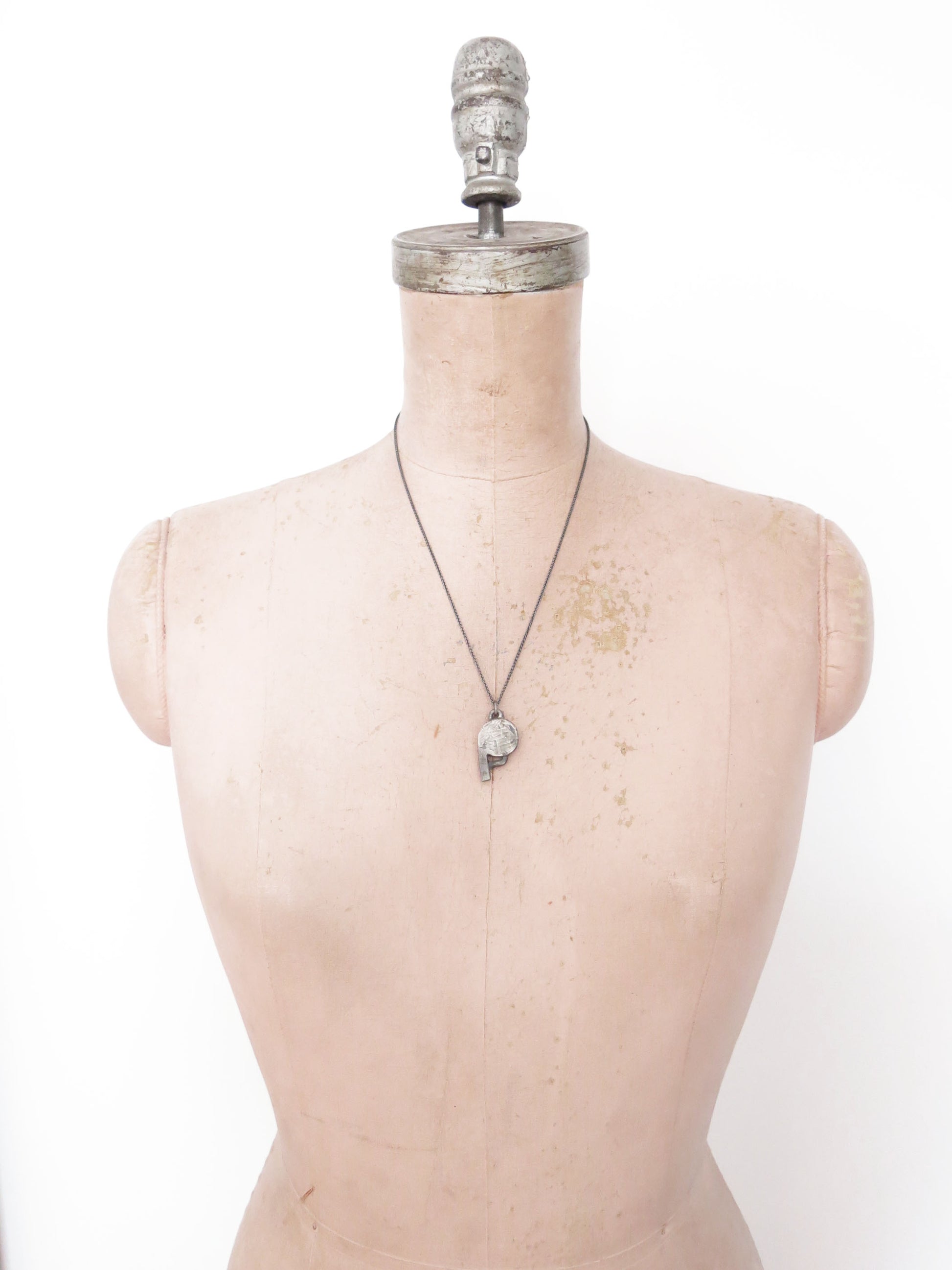 sculpted in wax and cast in solid sterling silver with a textured & oxidized finish. oxidized silver will evolve and become brighter and shinier with wear. comes on a 20" sterling silver chain.