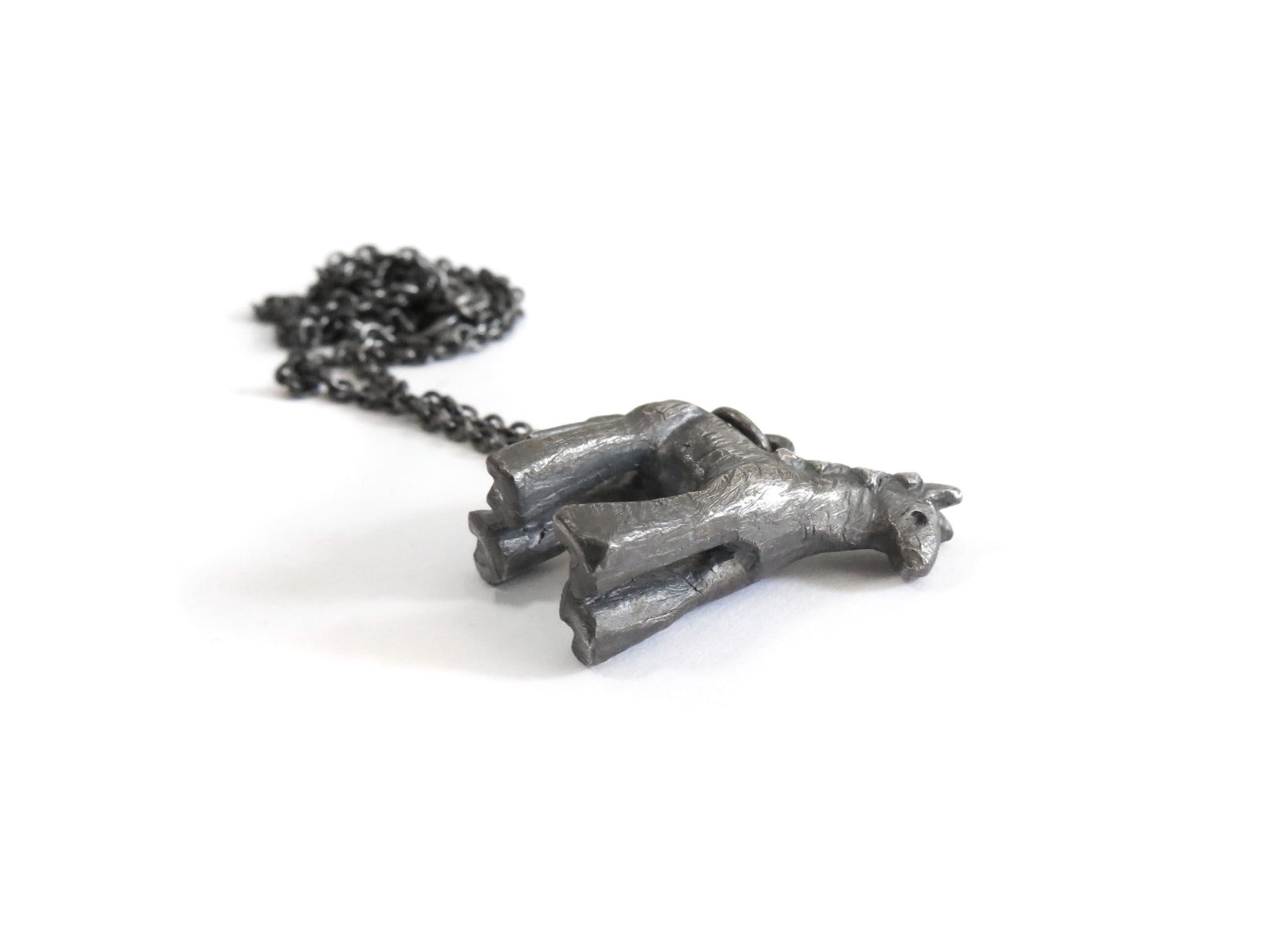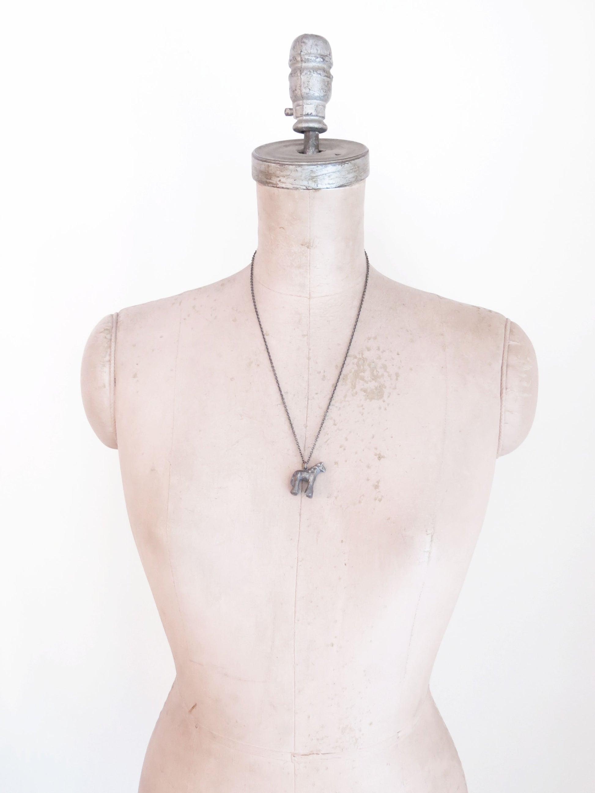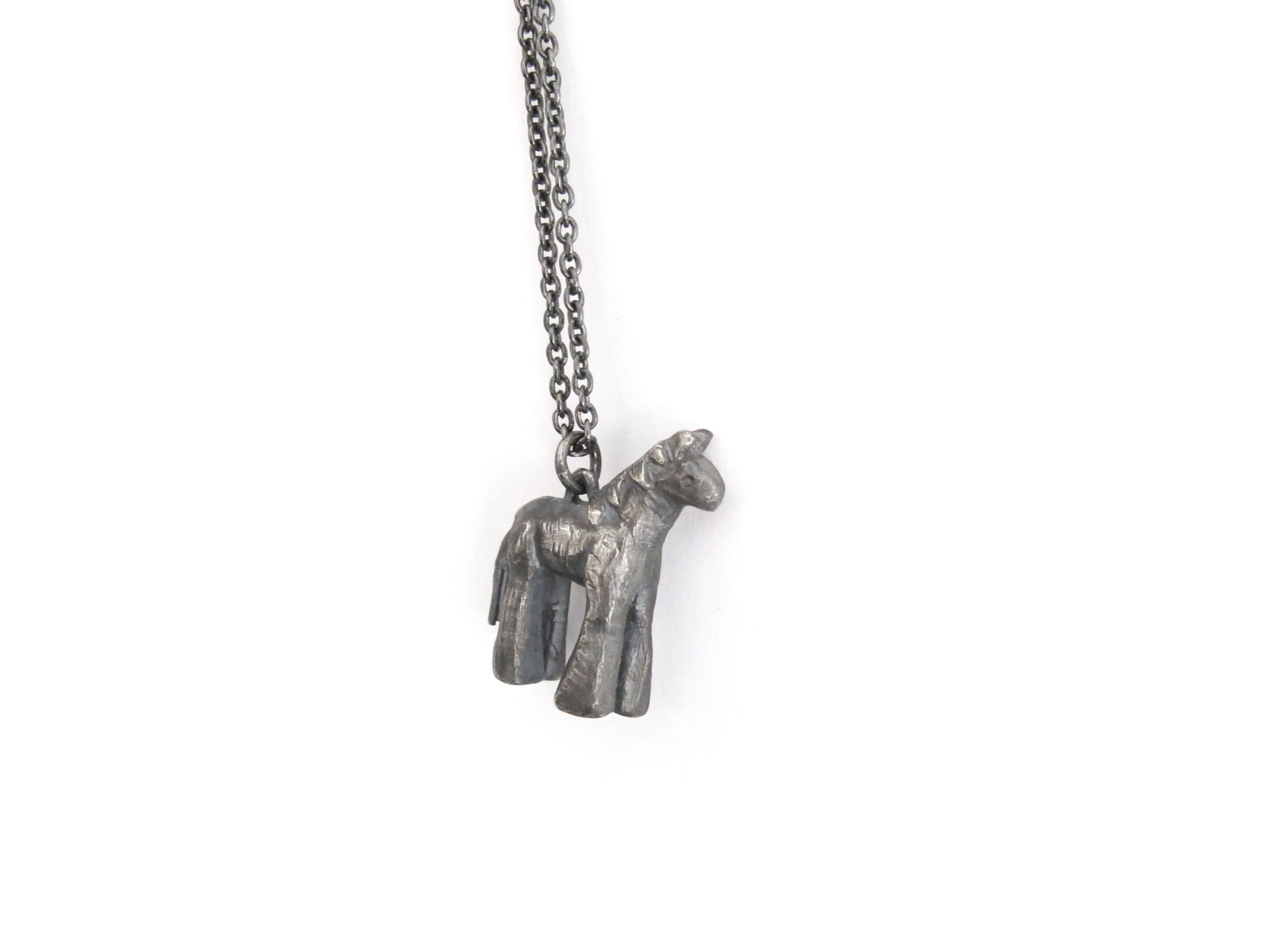 Fabriqué à l'origine dans le cadre d'une collection de petites figurines d'animaux pour mon enfant, ce poney a été sculpté en cire et coulé en argent sterling massif.