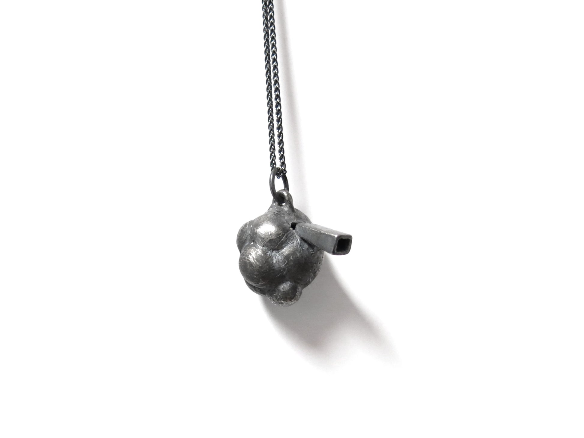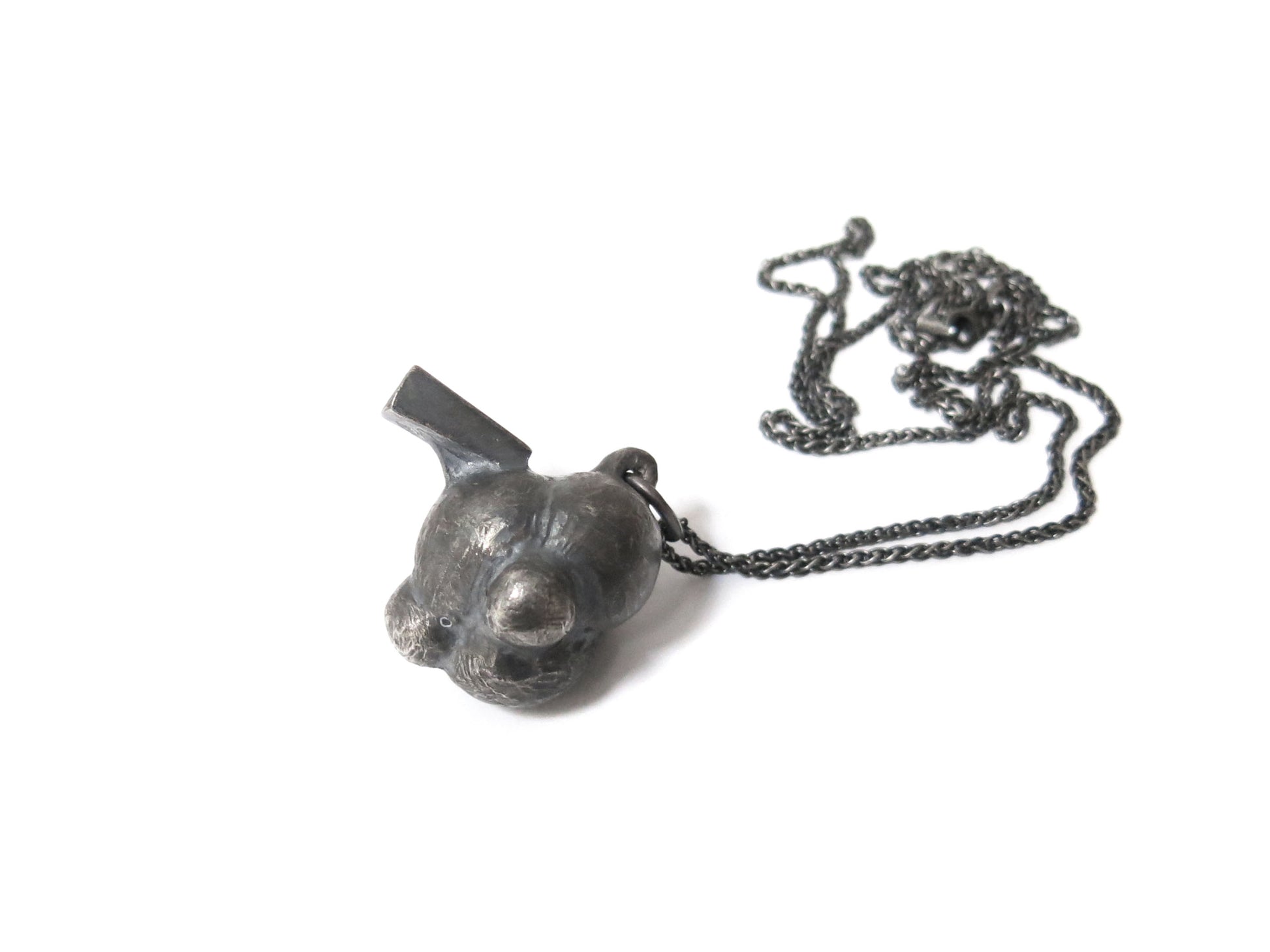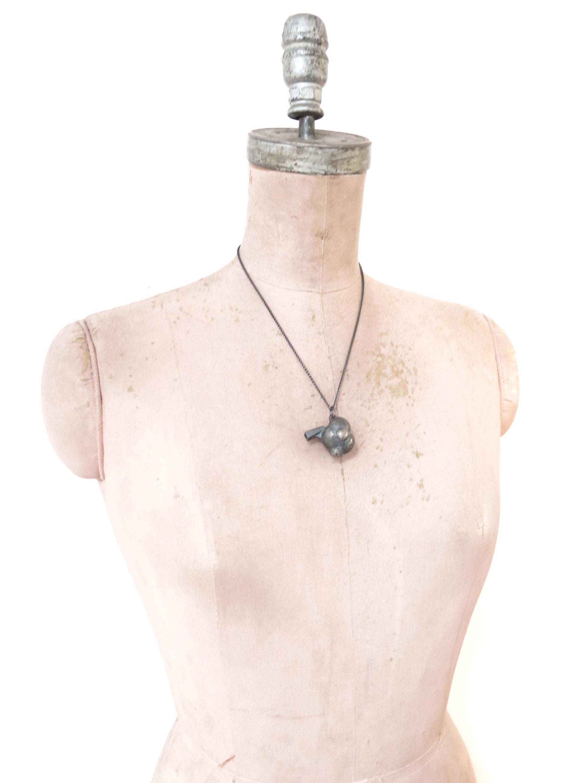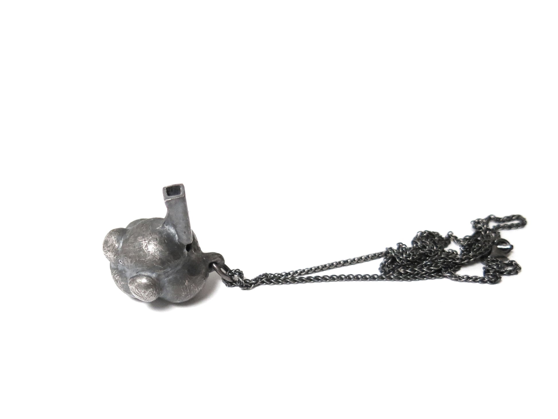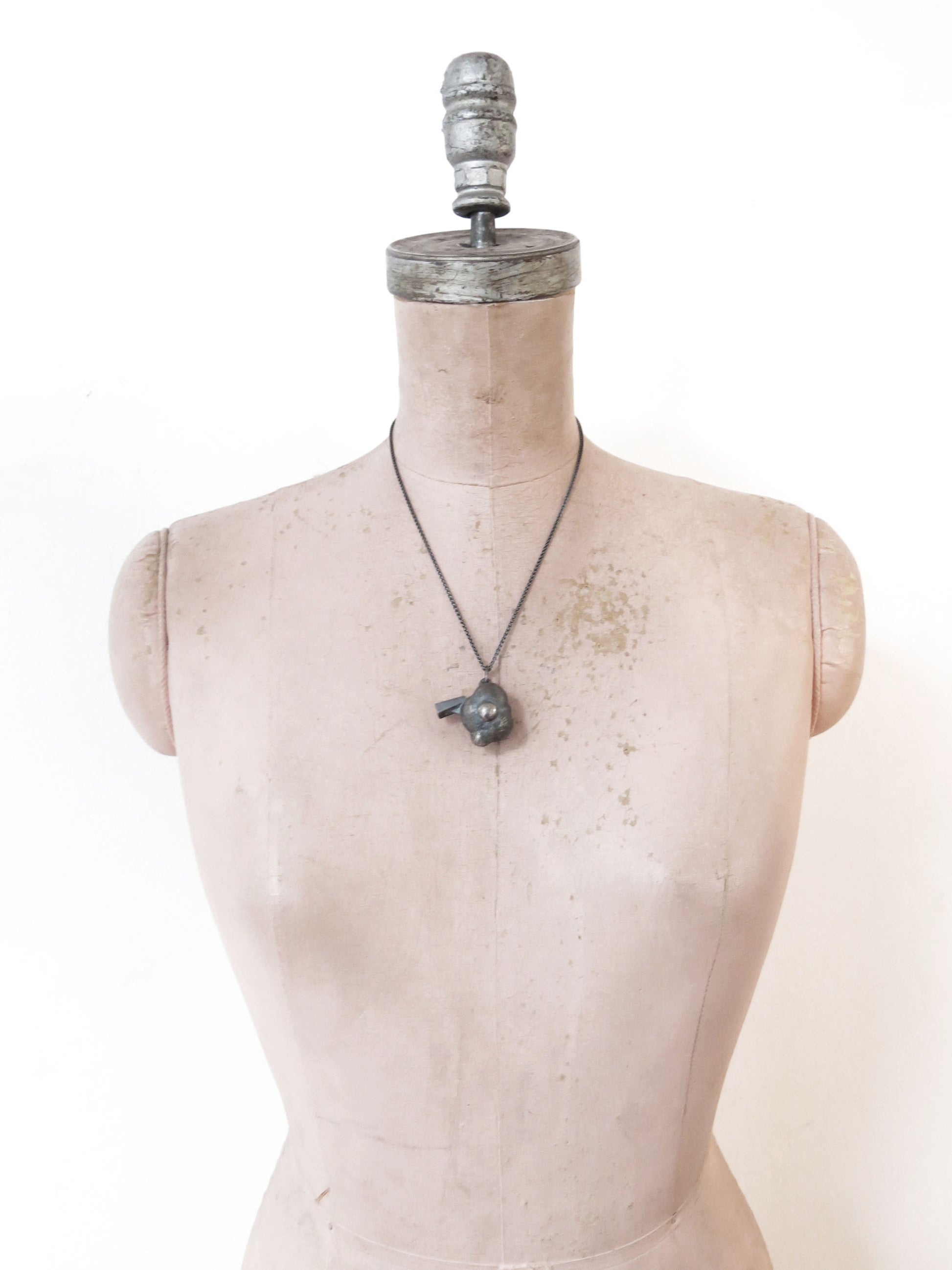 sculpted in wax and cast in solid sterling silver with a textured & oxidized finish. oxidized silver will evolve and become brighter and shinier with wear. comes on a 20" sterling silver chain.