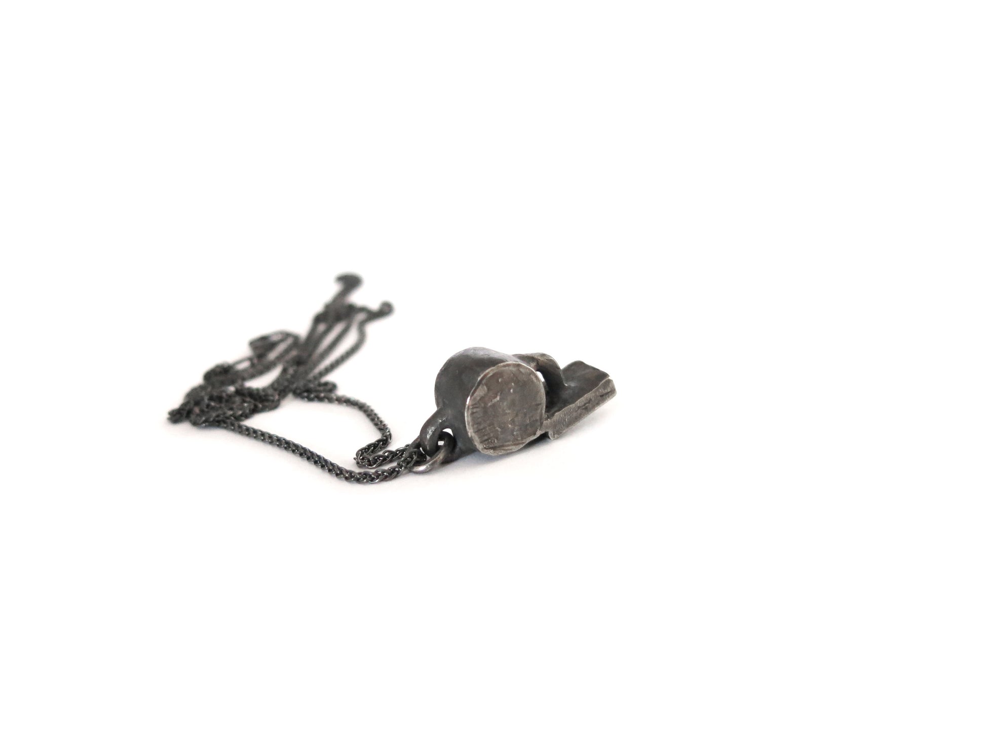 sculpted in wax and cast in sterling silver with an oxidized & textured finish. oxidized silver will evolve and become brighter and shinier with wear. comes on a 20" chain.