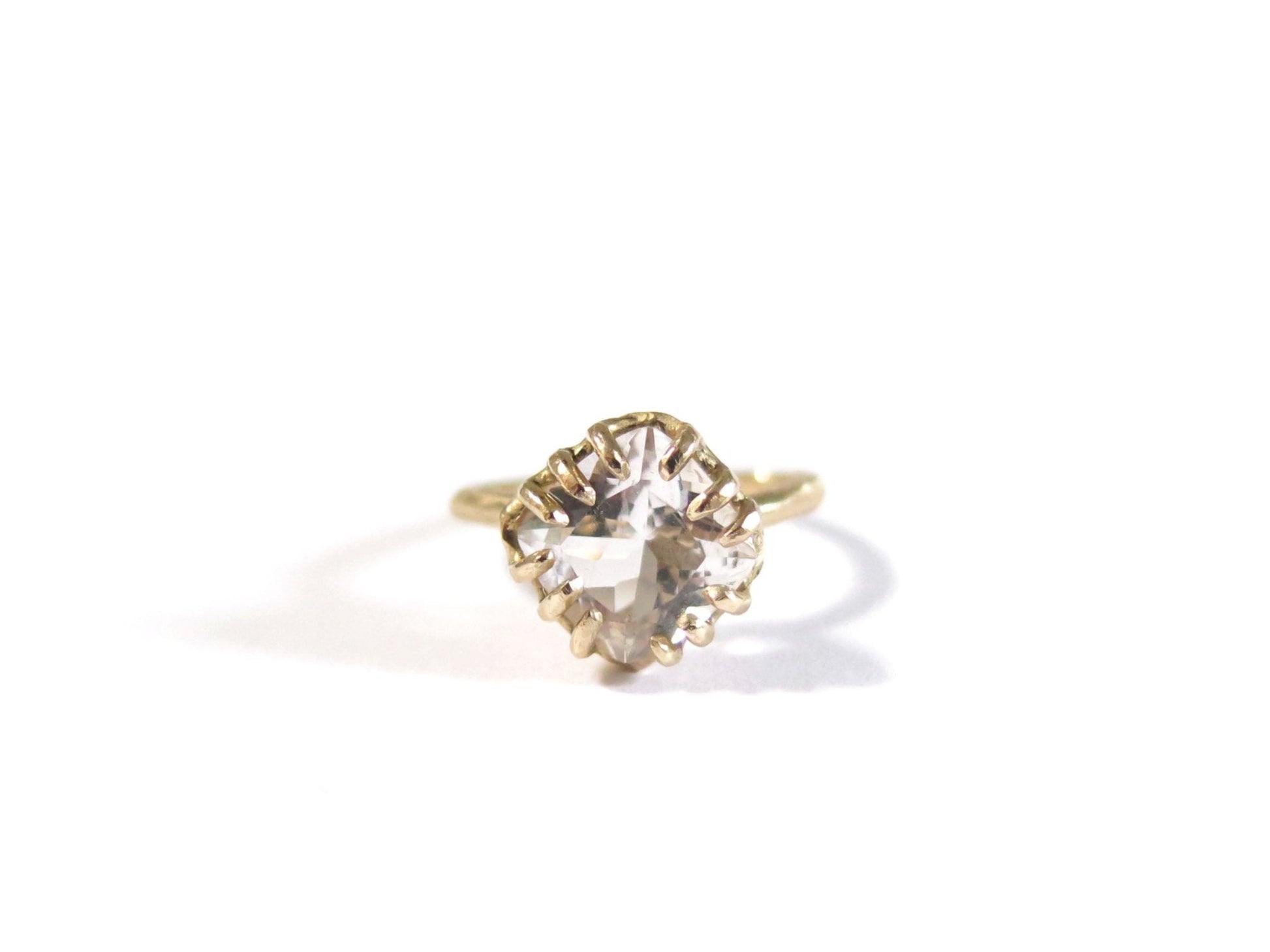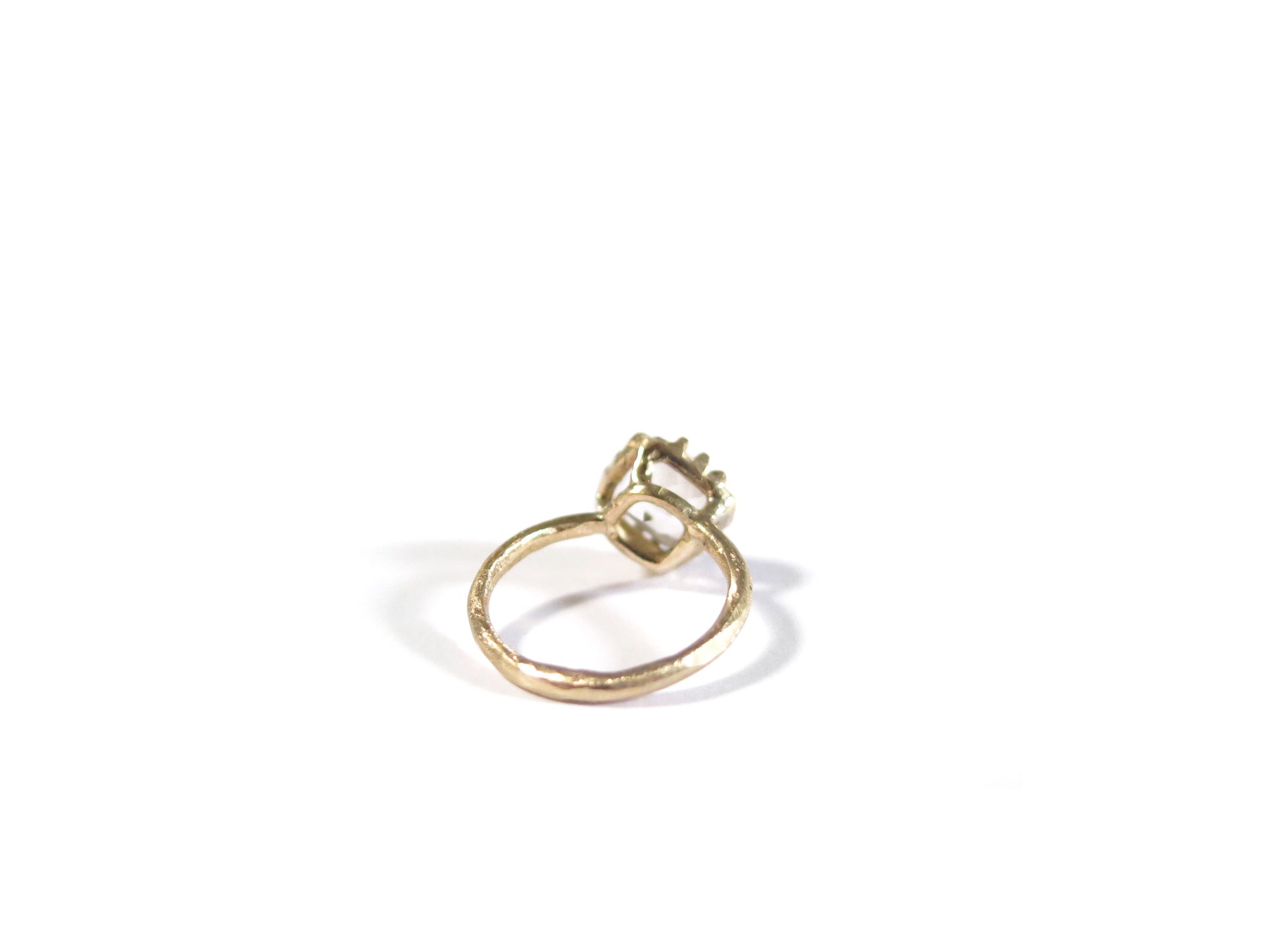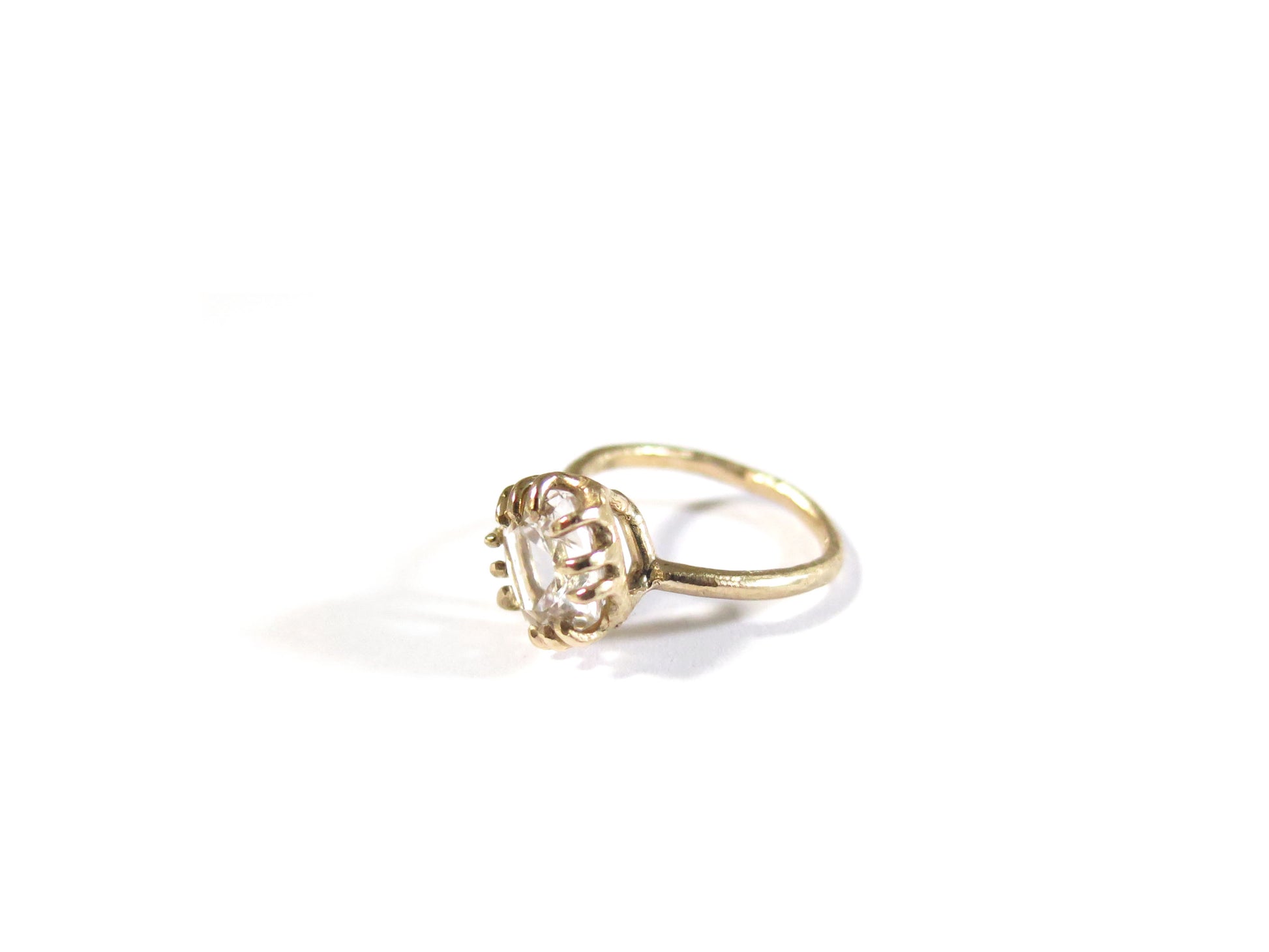 a very big colourless square cushion cut topaz in 14K yellow gold.