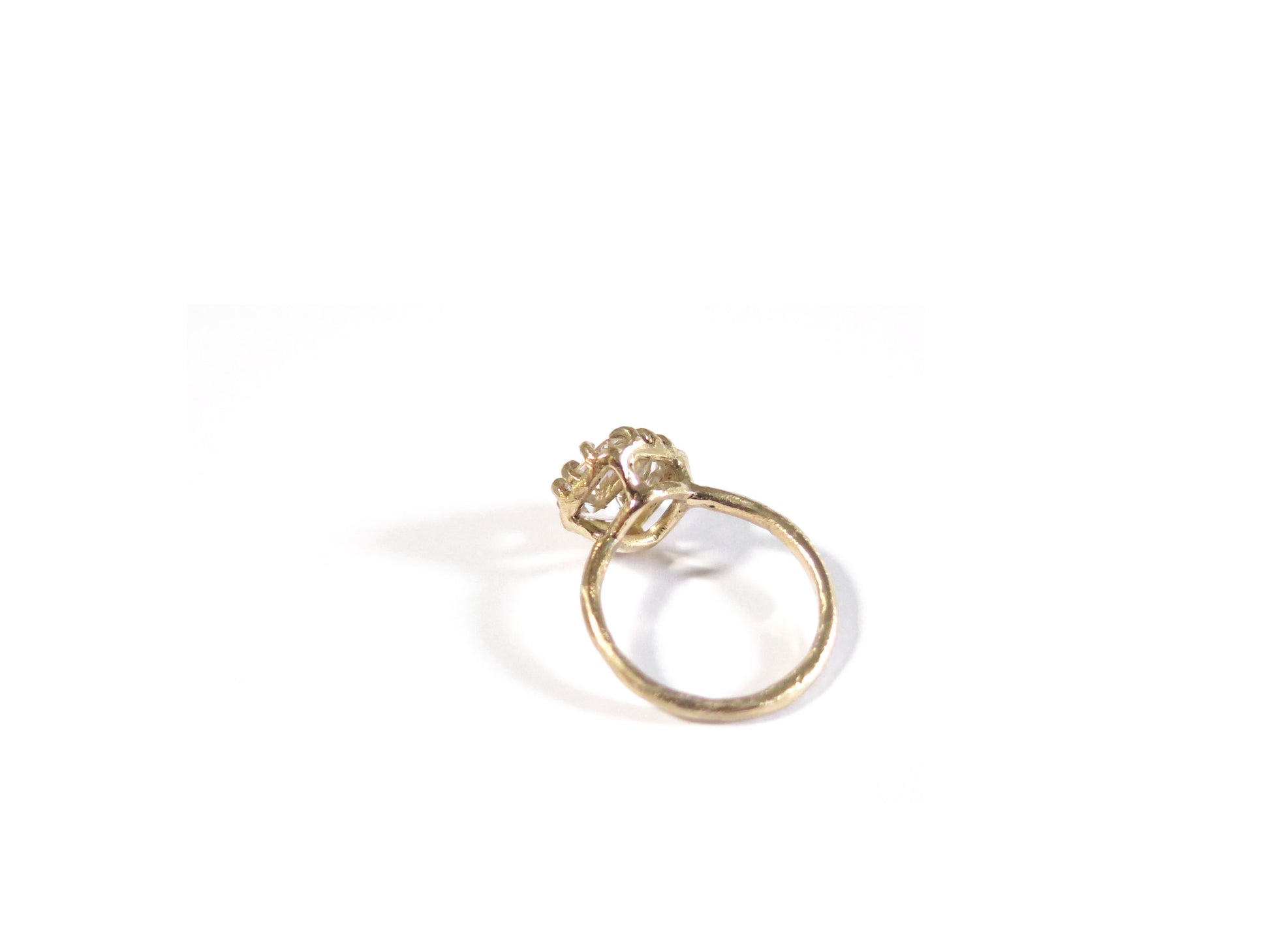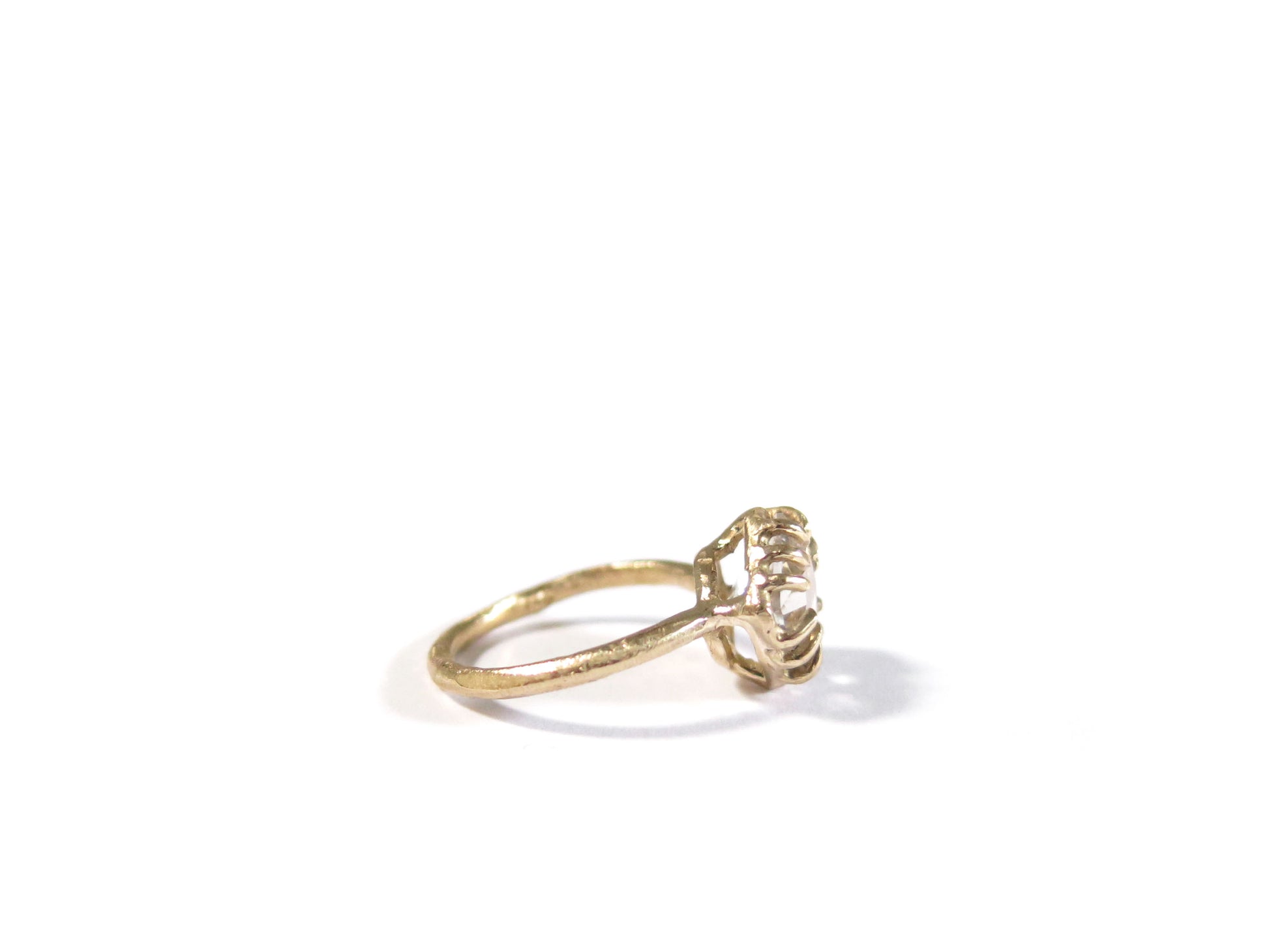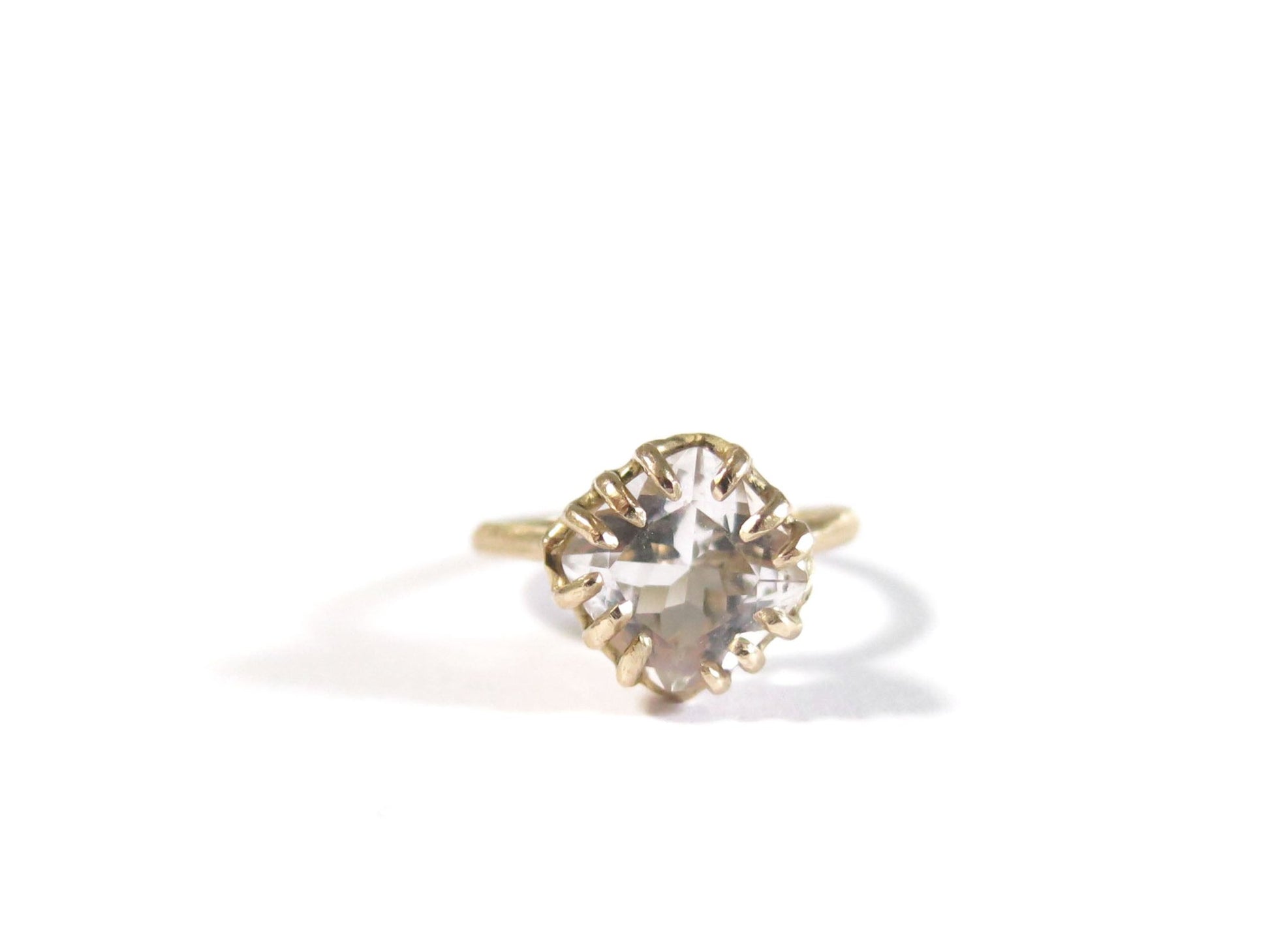 a very big colourless square cushion cut topaz in 14K yellow gold.