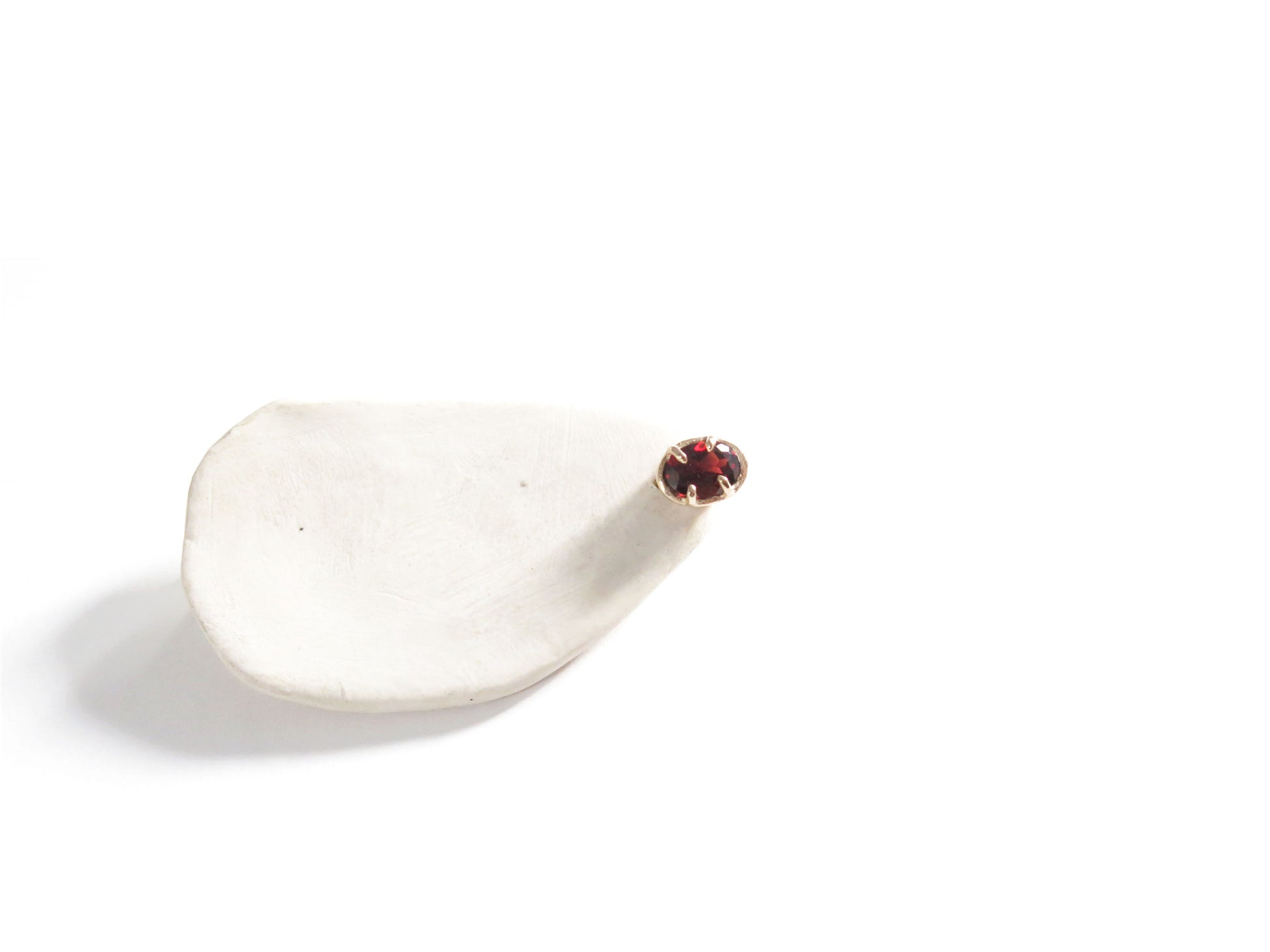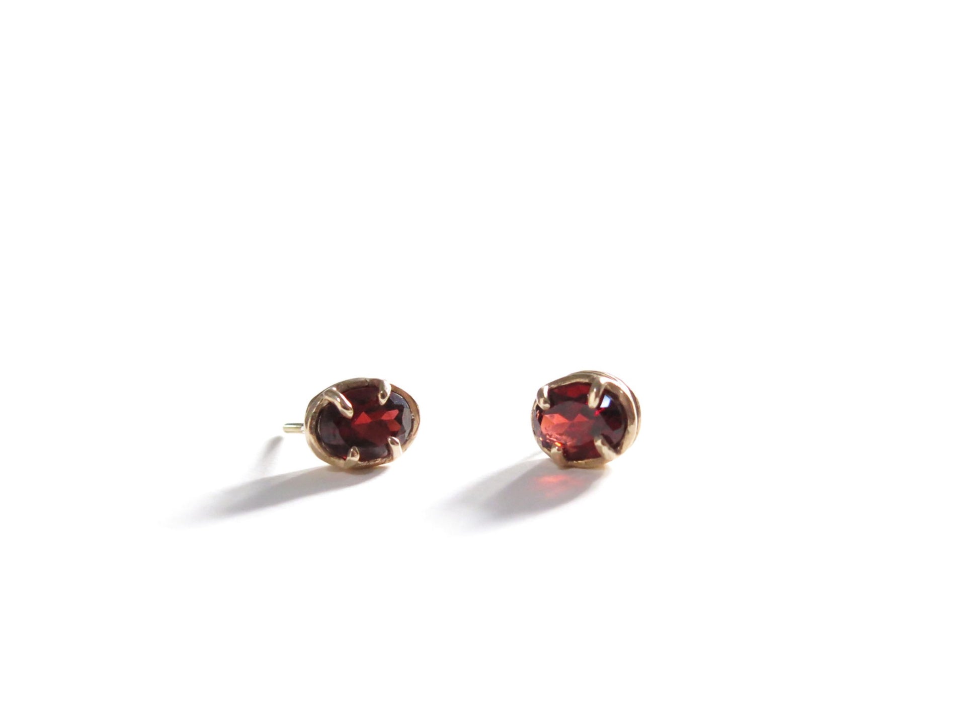 a pair of faceted oval garnet earrings. solid 14K yellow gold settings with sturdy threaded posts with big screw on butterfly backs. make sure to give the backs a little spin every once in a while to make sure they're still secure.