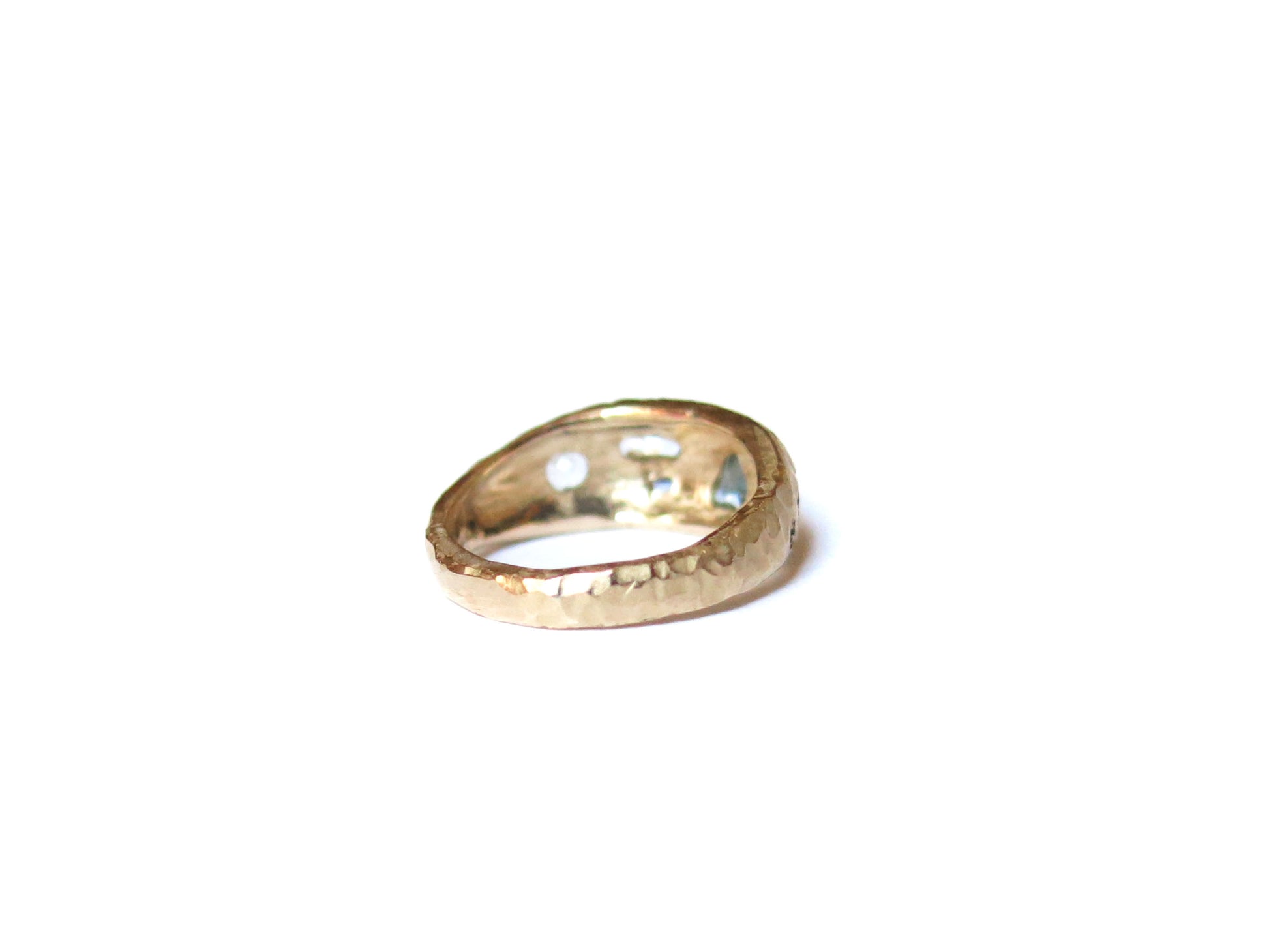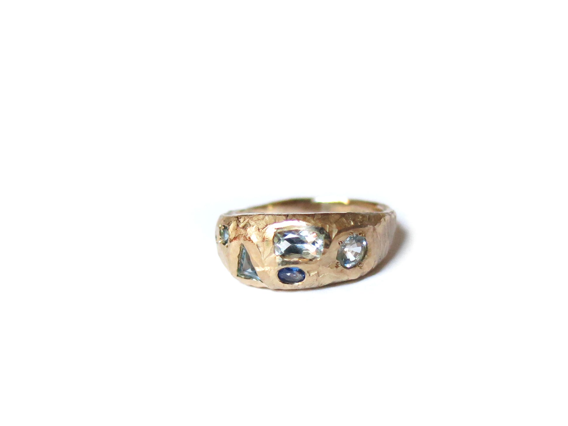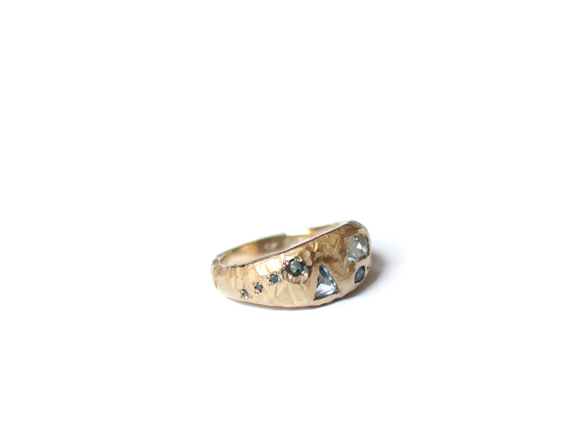 a textured solid 14K yellow gold ring that includes a bunch of canadian gemstones. size 5.5