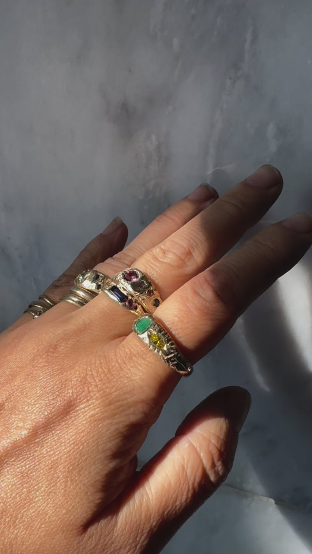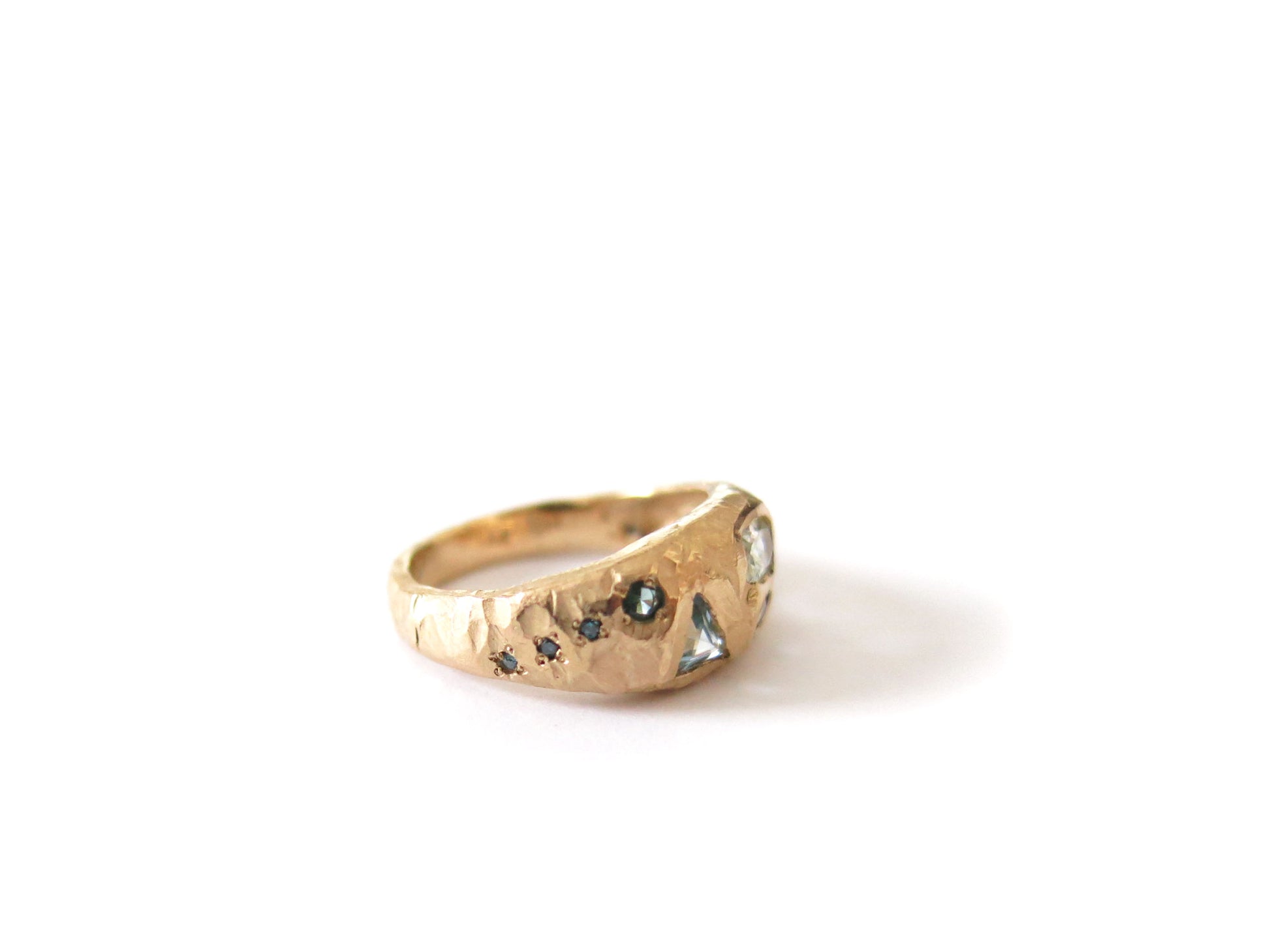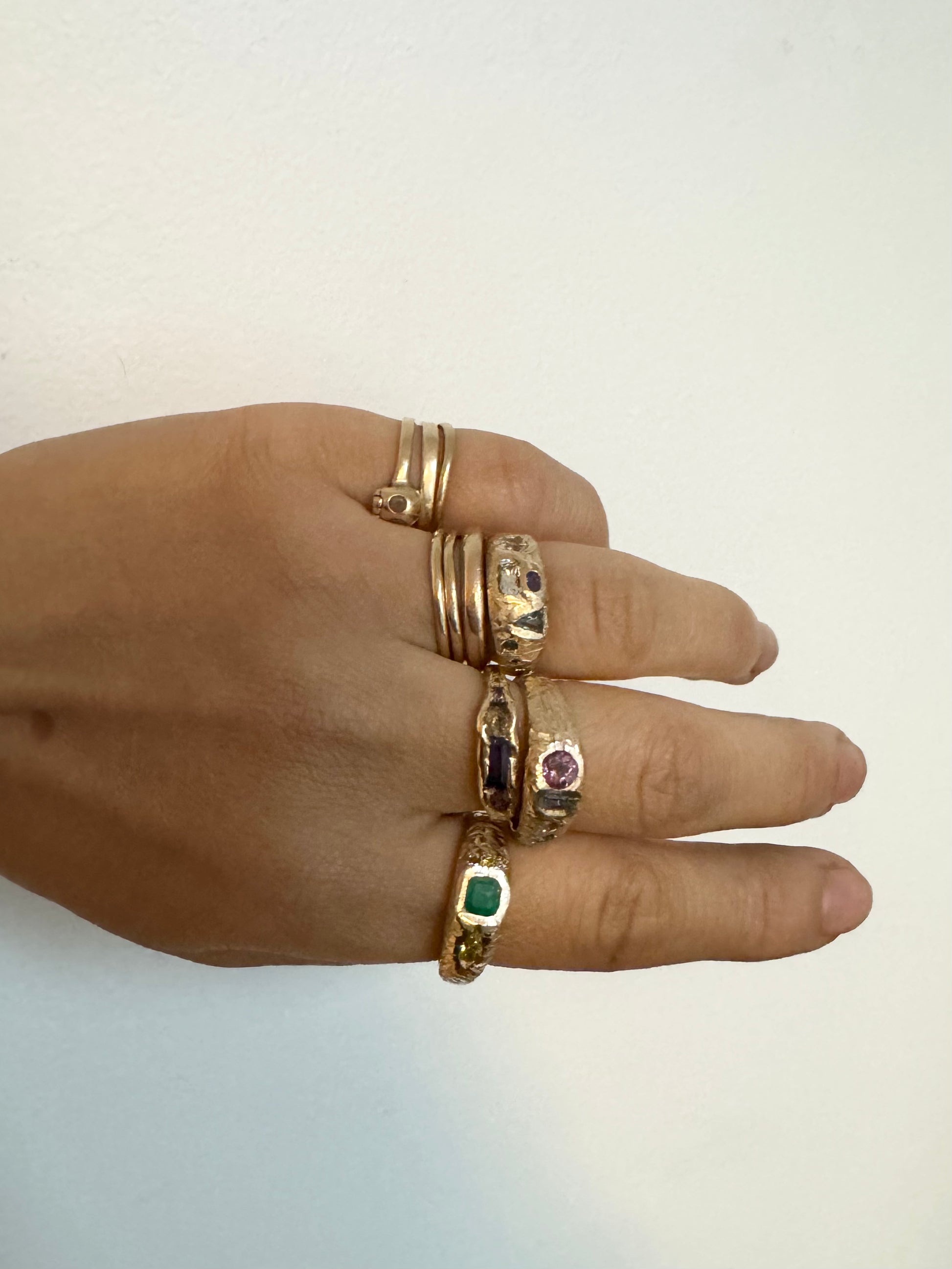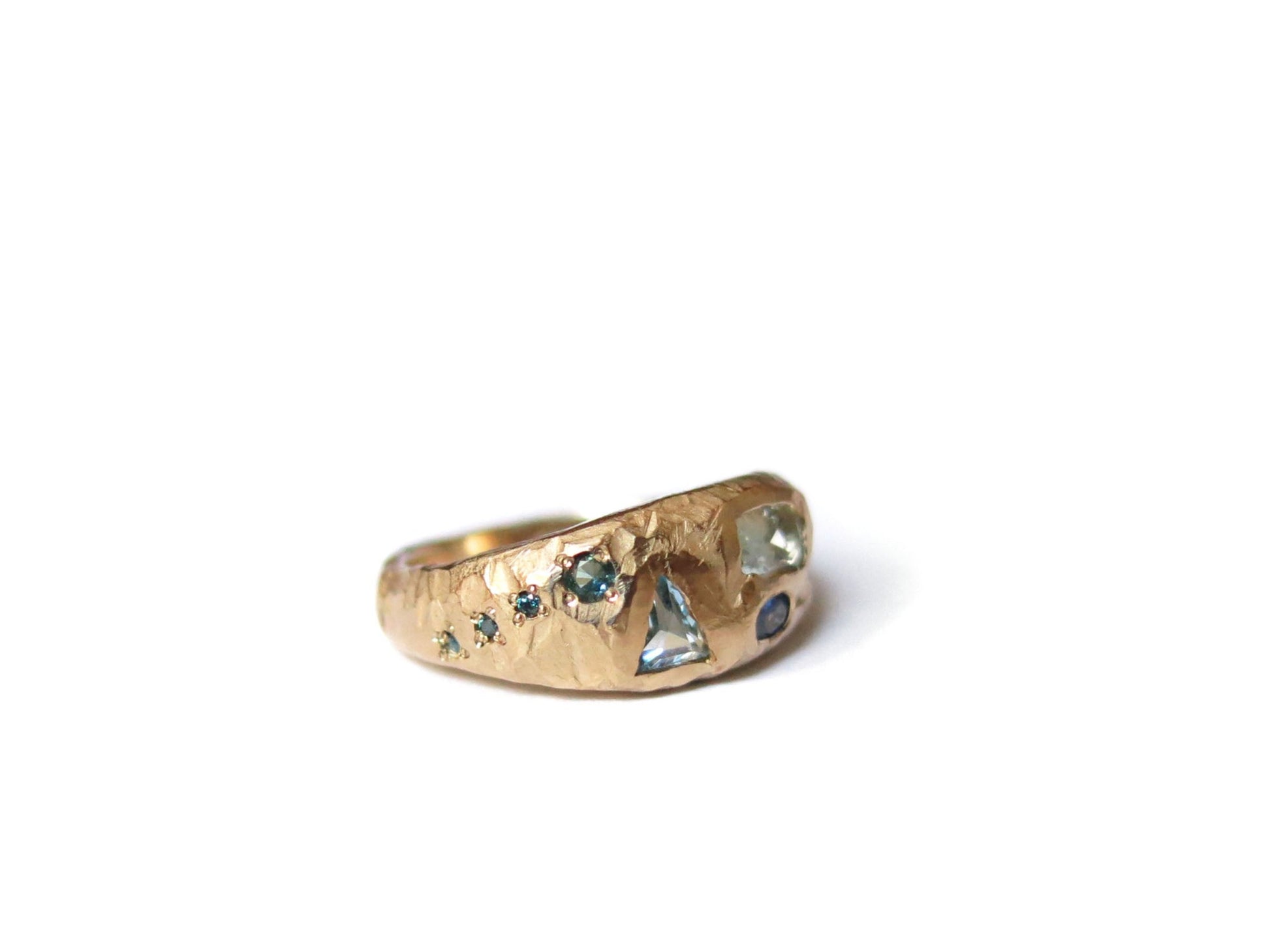 a textured solid 14K yellow gold ring that includes a bunch of canadian gemstones. size 5.5