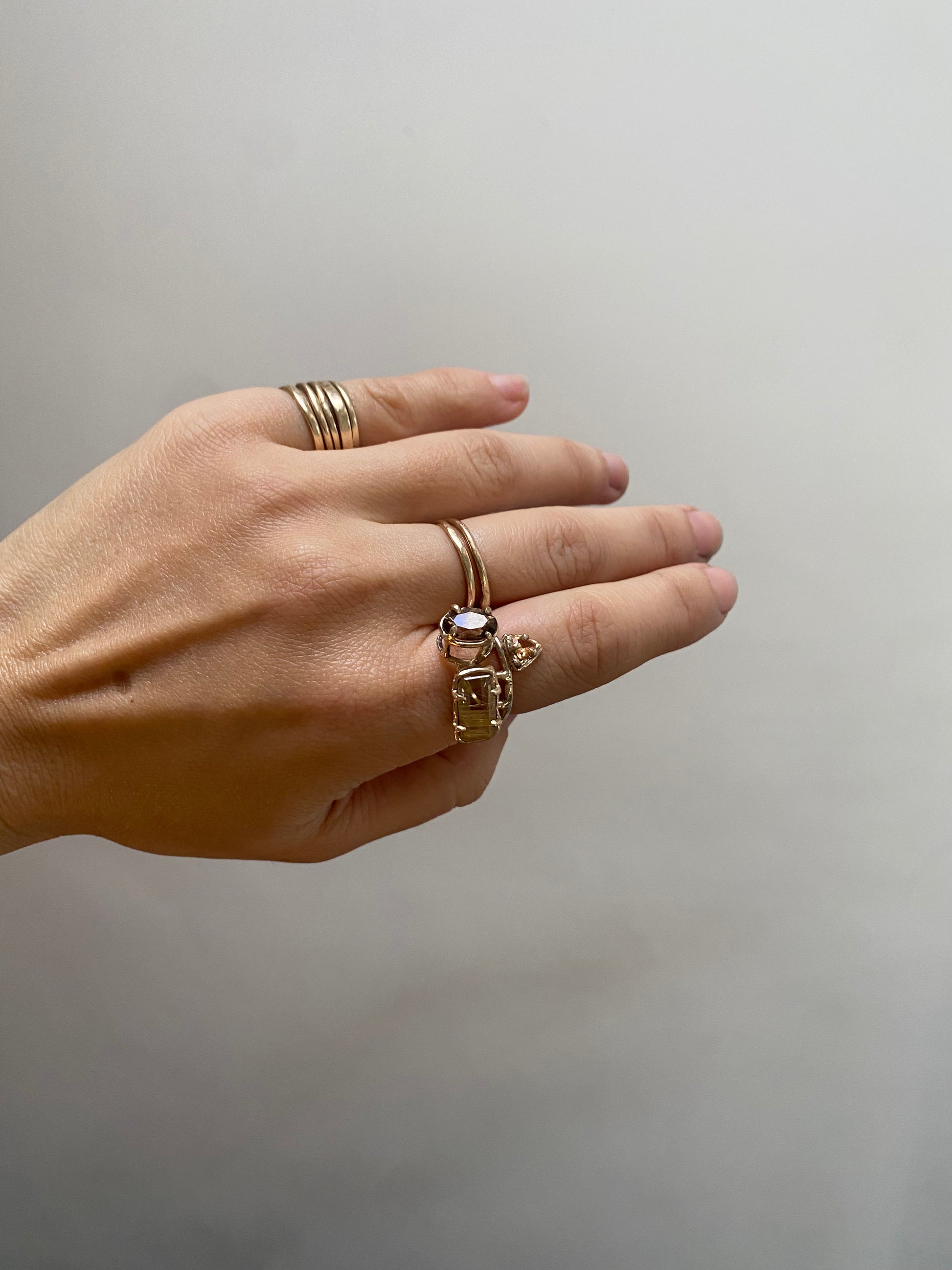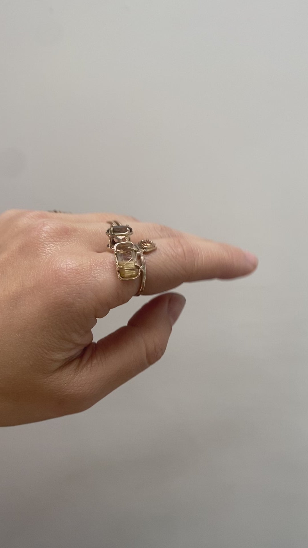 14K SMOKEY QUARTZ & SPESSARTINE GARNET & RUTILATED QUARTZ