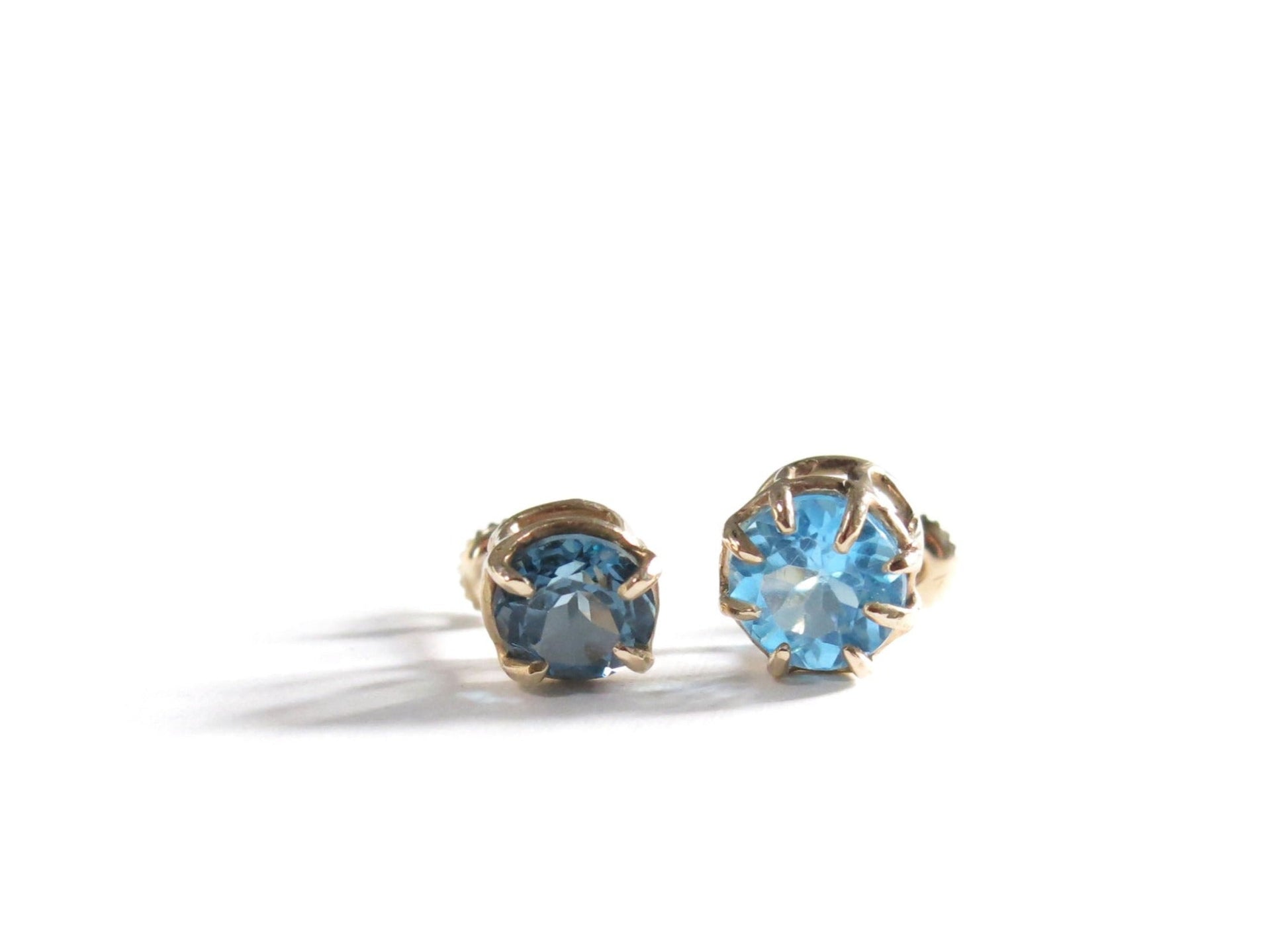a pair of BIG topaz earrings. solid 14K yellow gold settings with sturdy threaded posts with big screw on butterfly backs. make sure to give the backs a little spin every once in a while to make sure they're still secure.