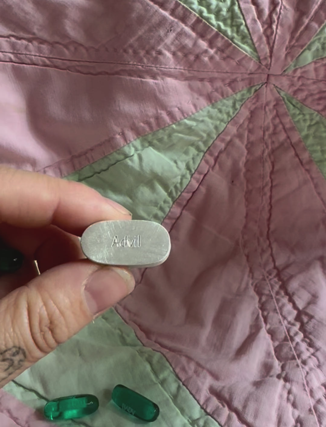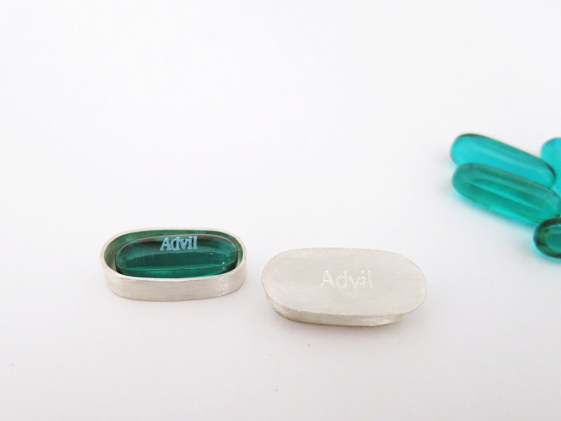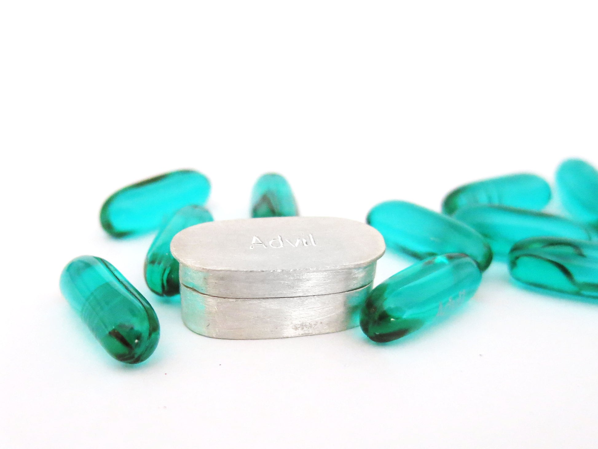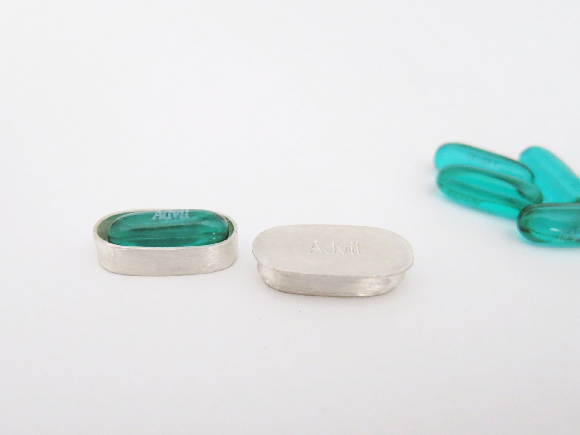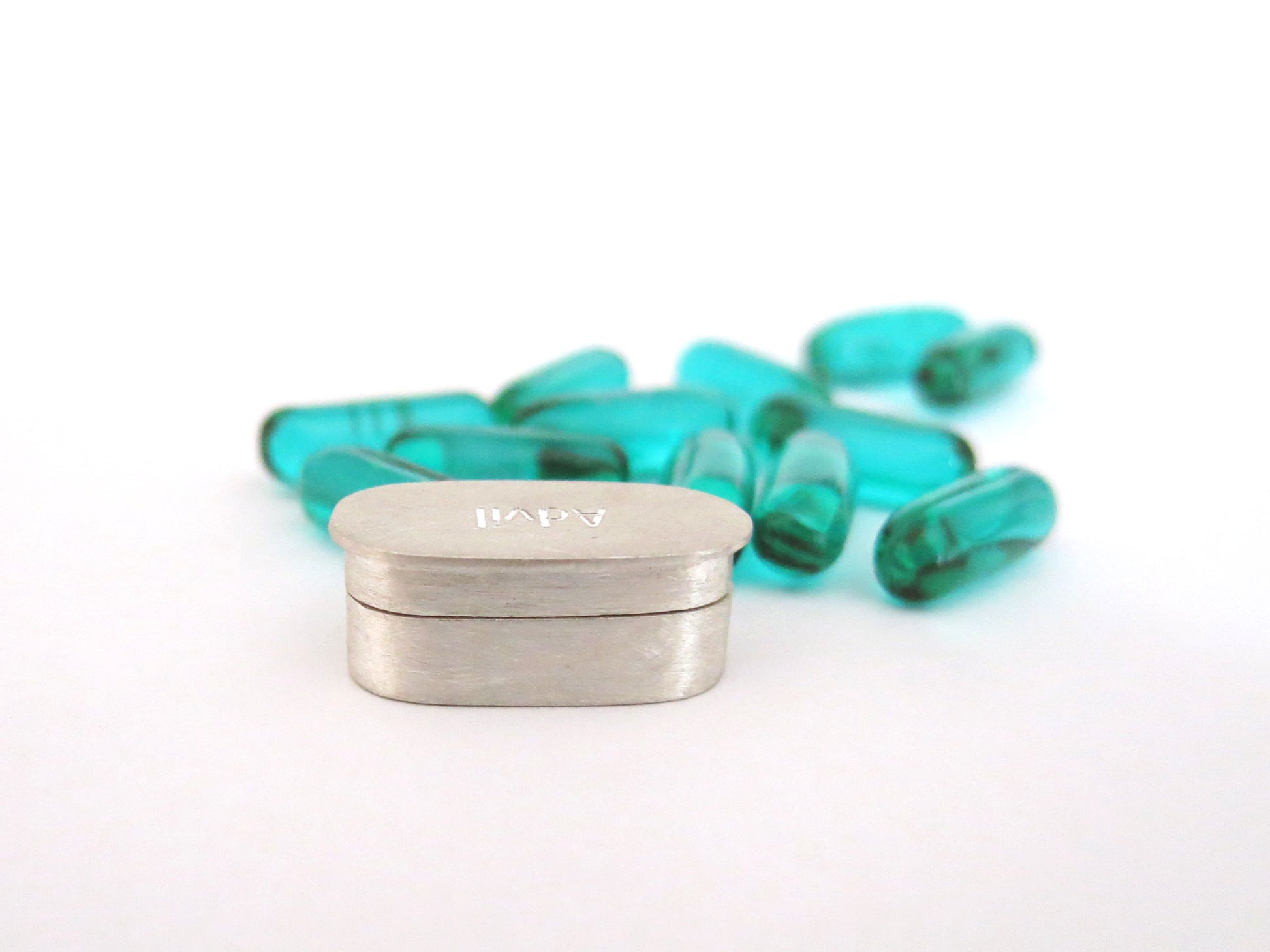 a little container for your single serving of advil. this fits a standard sized 200 mg liqui-gels capsule. less pocket lint on your pill. if you take three for your hangover, i don't have one for that, you'll have to buy three boxes. sorry.