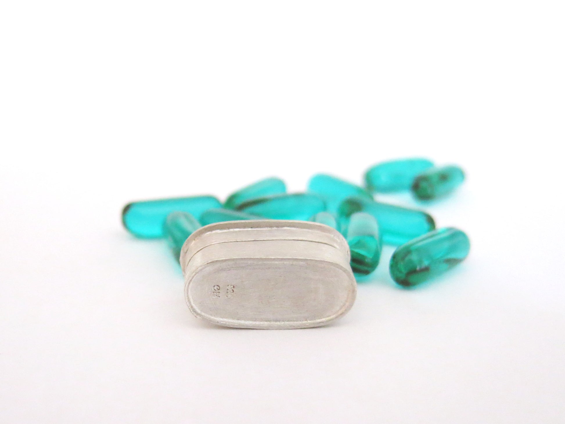 solid sterling silver with a textured brushed finish. each box will evolve and become shinier the longer you keep it in your pocket. each one is individually engraved.