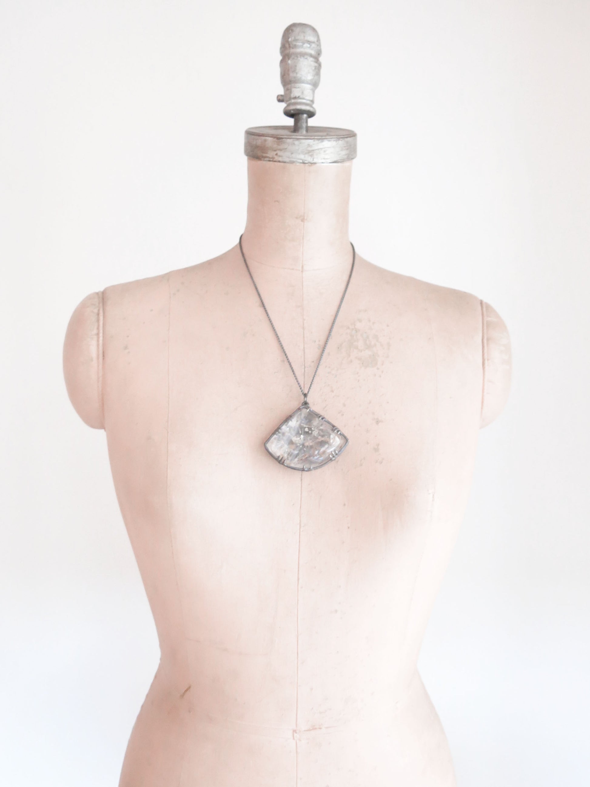 oxidized silver will evolve with wear and become brighter and shinier. pendant can be worn with the setting facing out or the crystal facing out. this pendant is one of a kind. please be kind to your crystal.