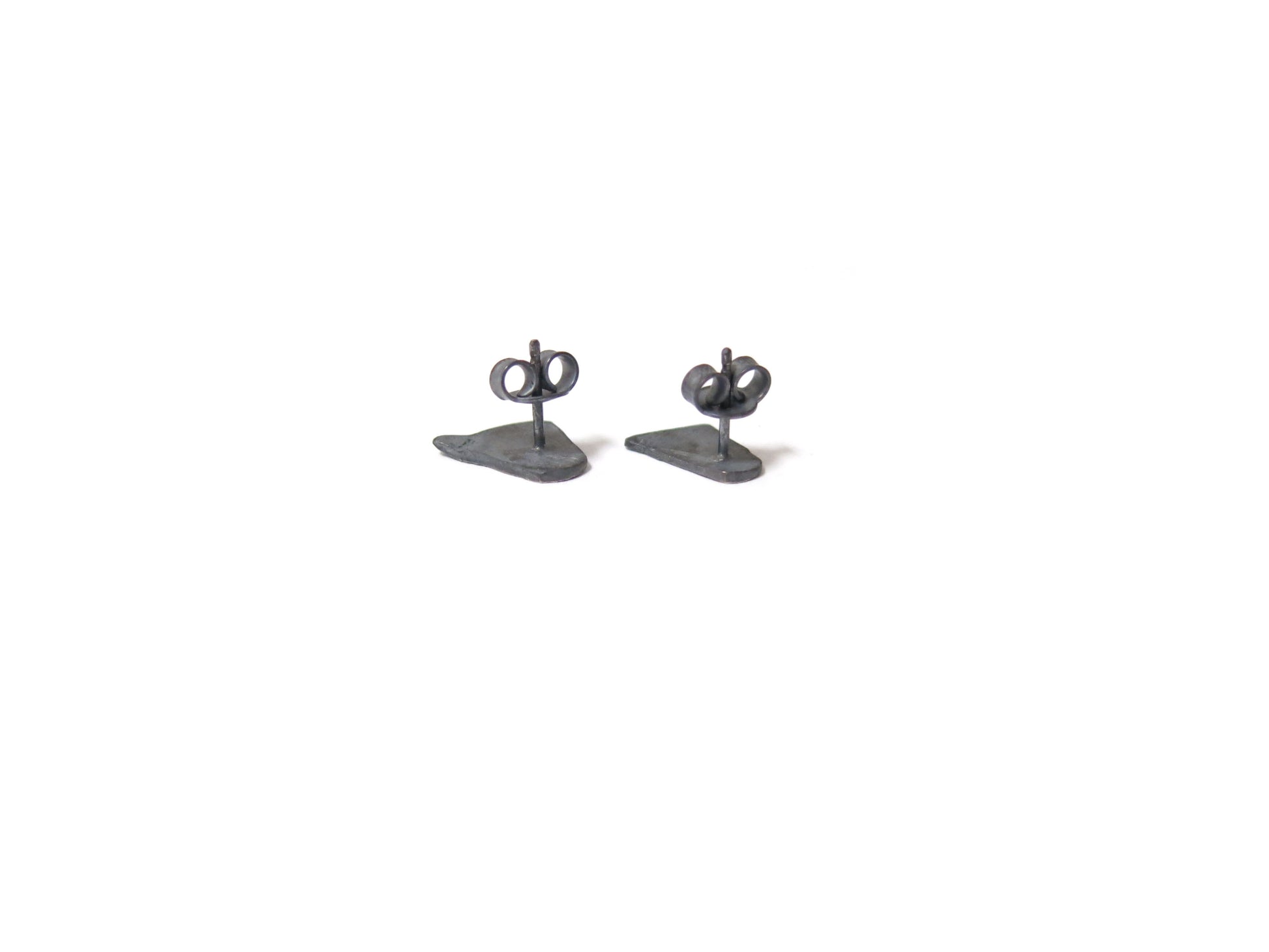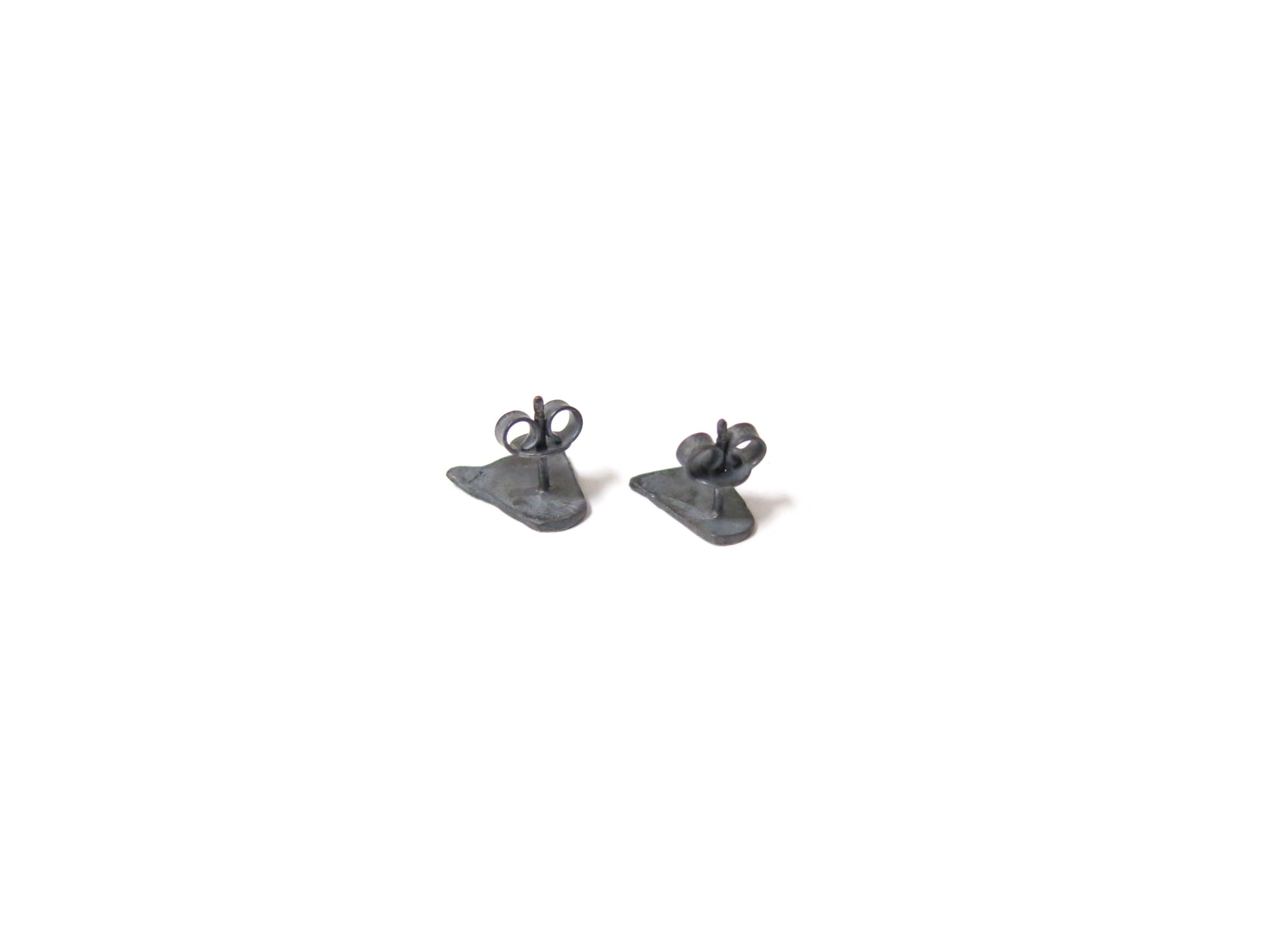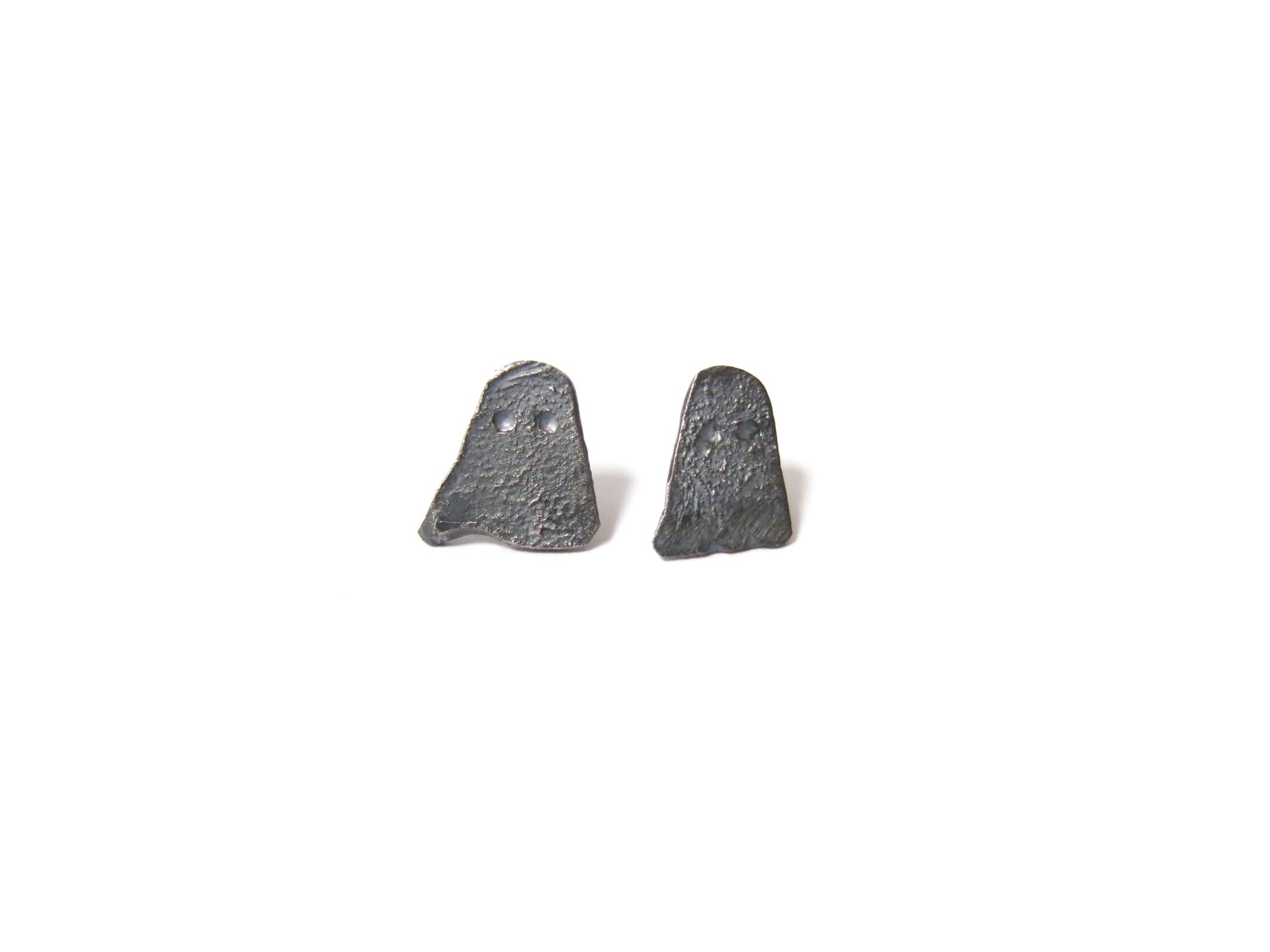 a little pair of mismatched ghosts, made with textured reticulated silver. oxidized silver will evolve and become brighter and shiner with wear.
