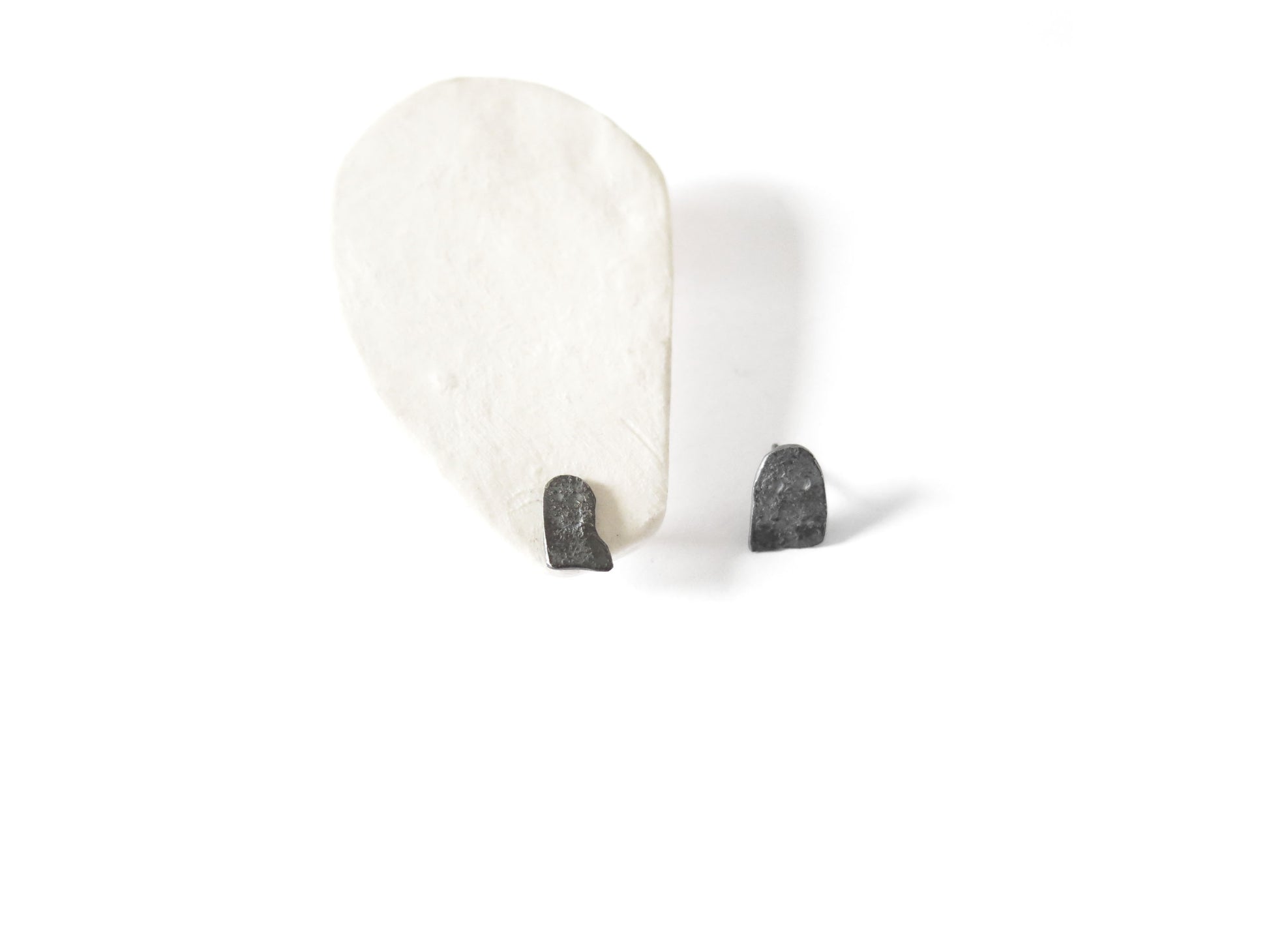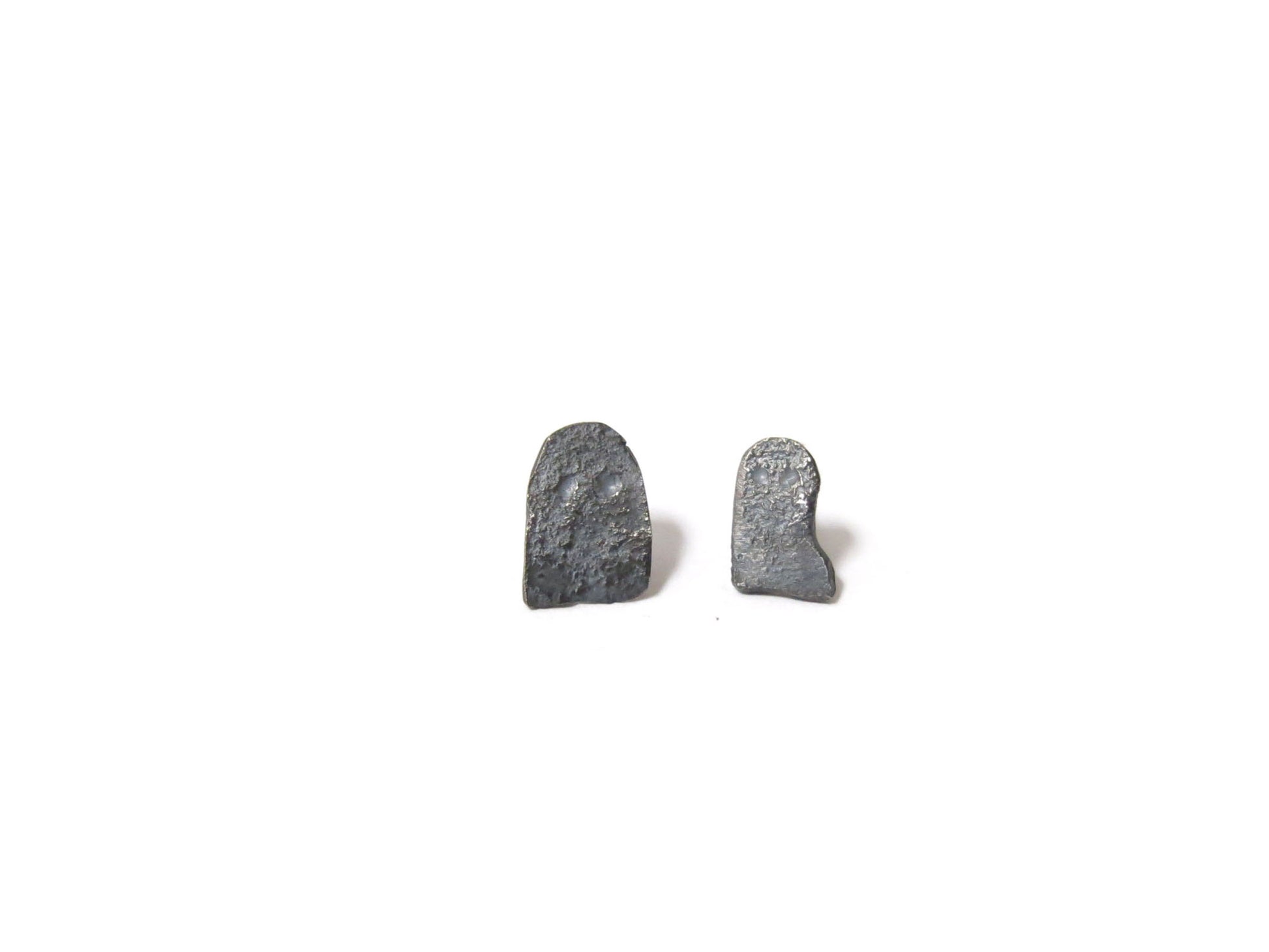 a little pair of mismatched ghosts, made with textured reticulated silver. oxidized silver will evolve and become brighter and shiner with wear.