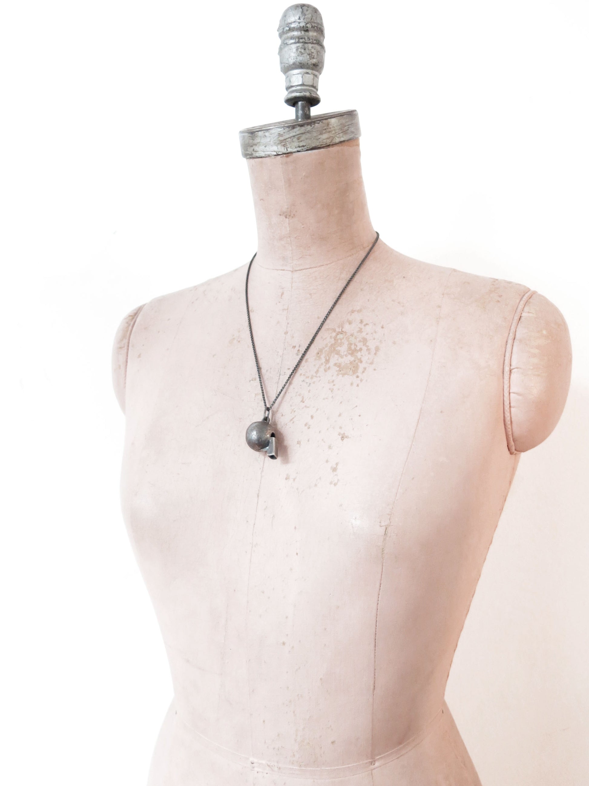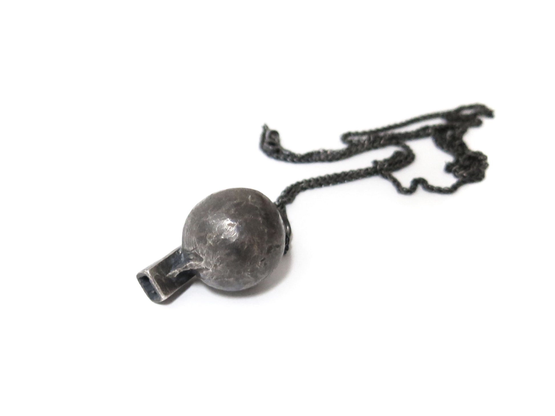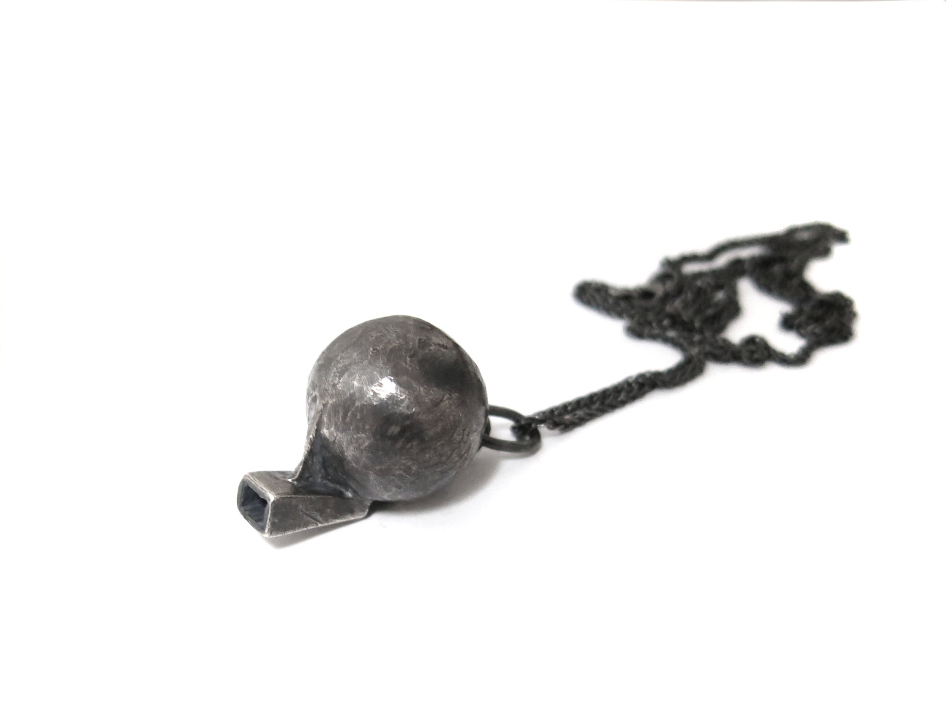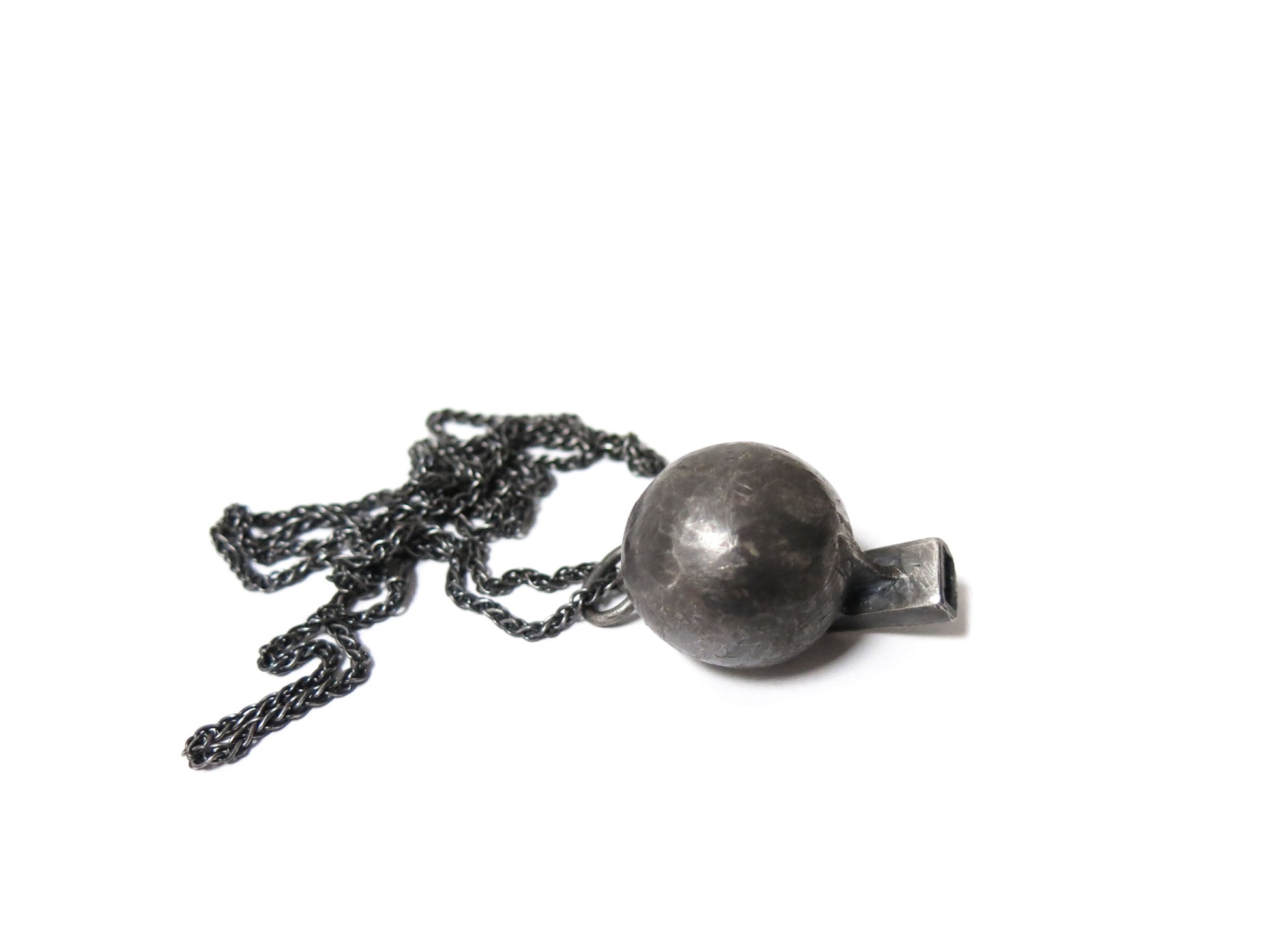 sculpted in wax and cast in solid sterling silver with a textured & oxidized finish. oxidized silver will evolve and become brighter and shinier with wear. comes on a 20" sterling silver chain.