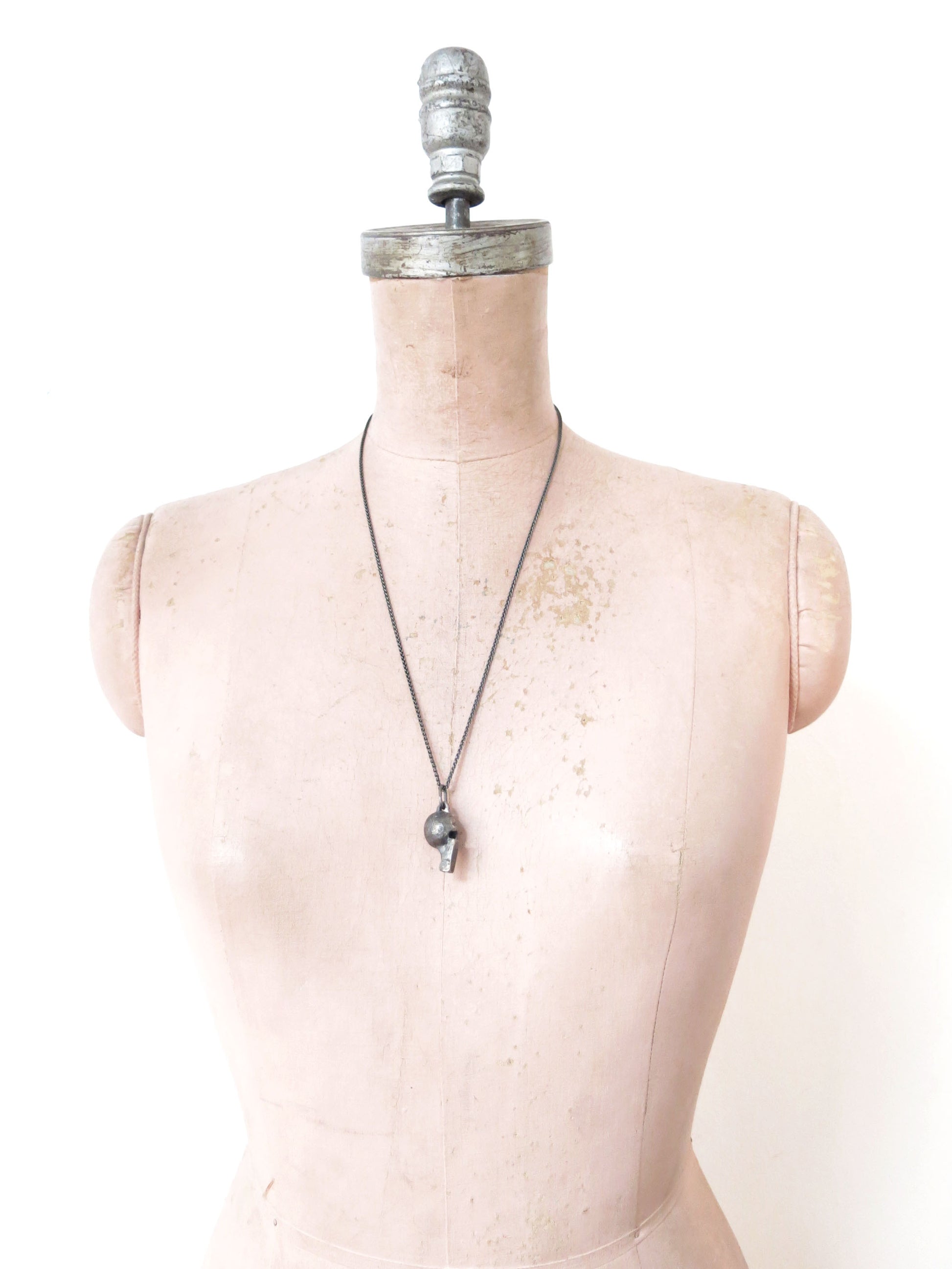 sculpted in wax & cast in sterling silver with a rough oxidized finish. oxidized silver will evolve and become brighter and shinier with wear. comes on a 20" silver chain.