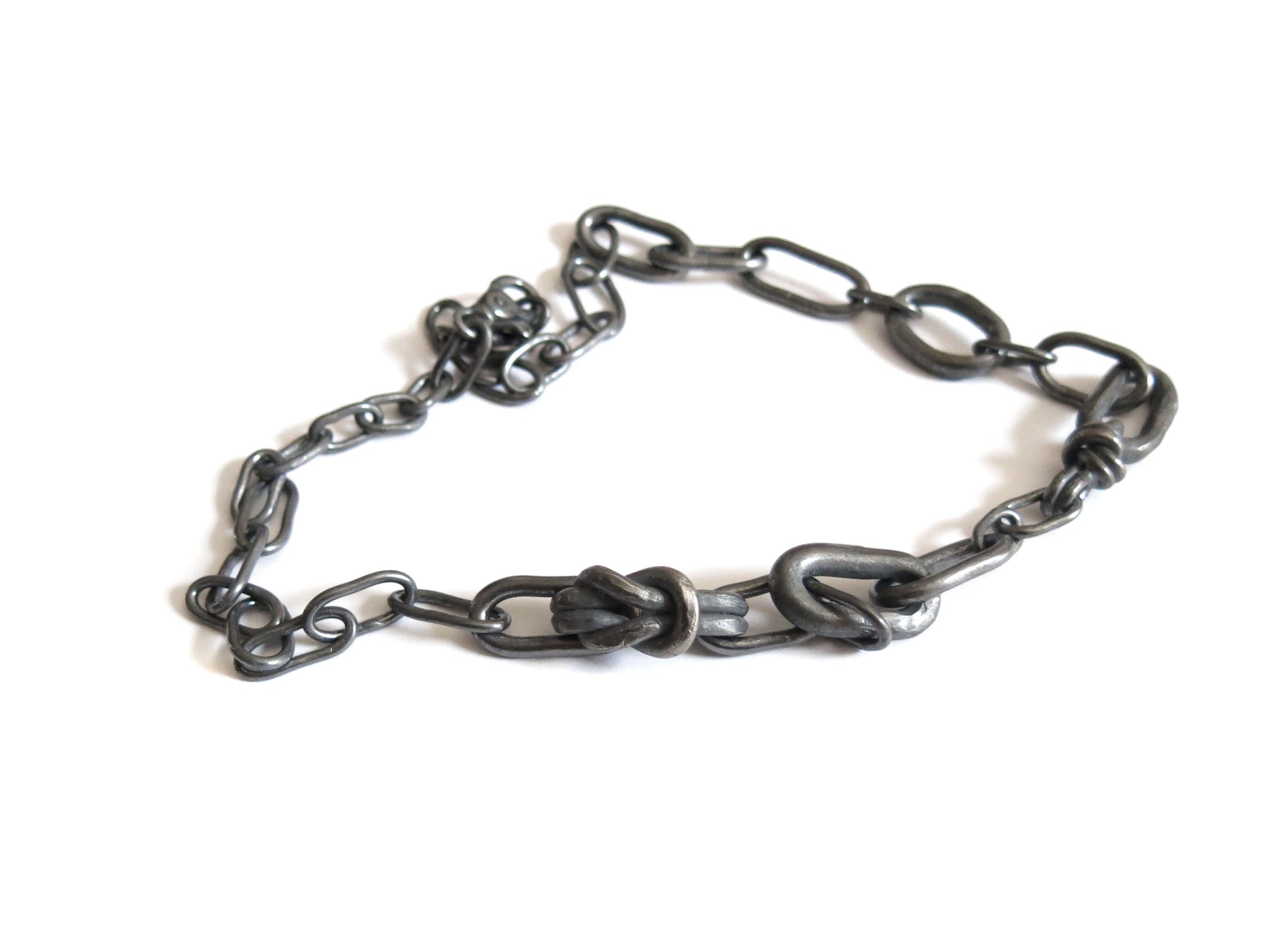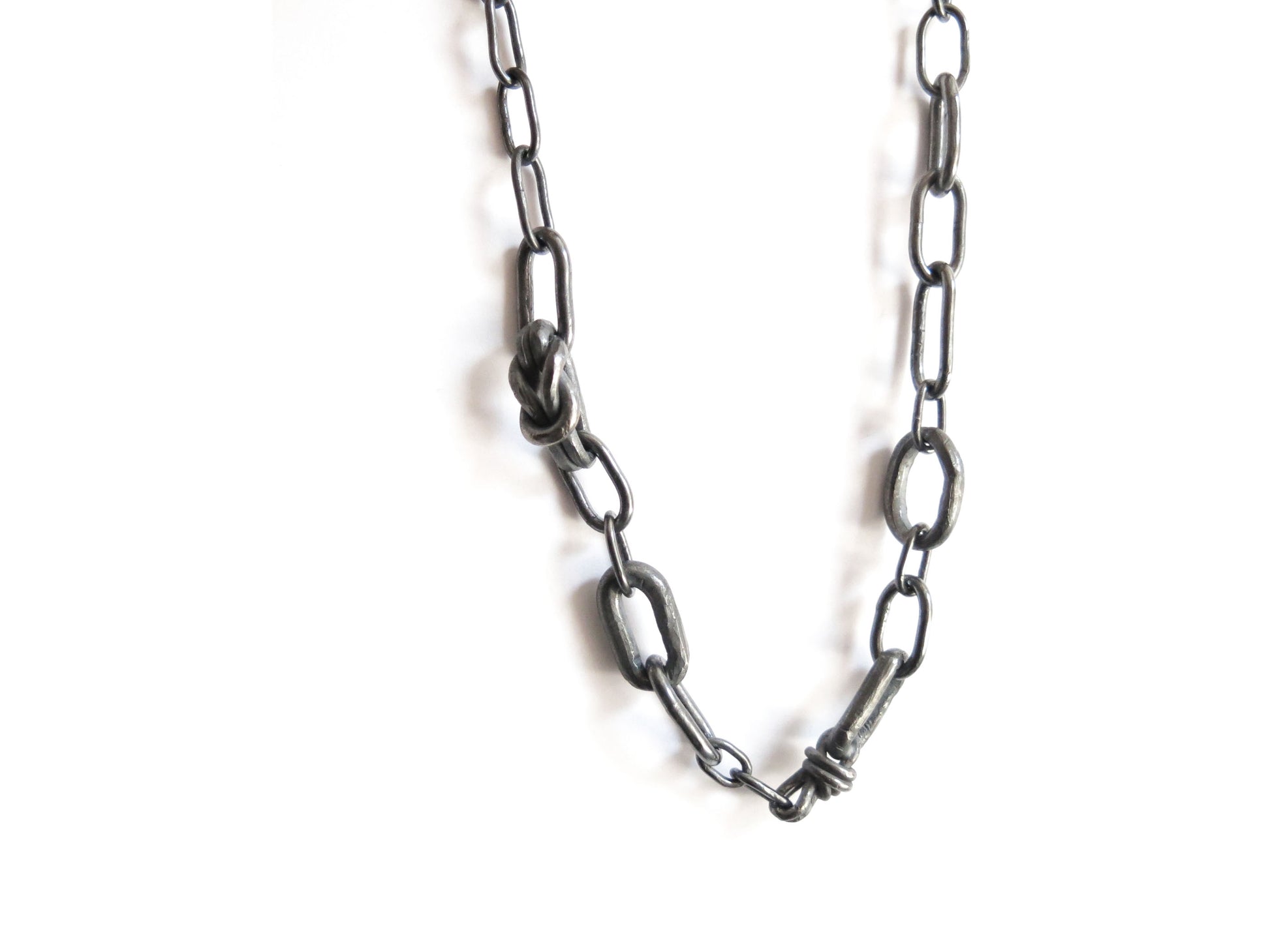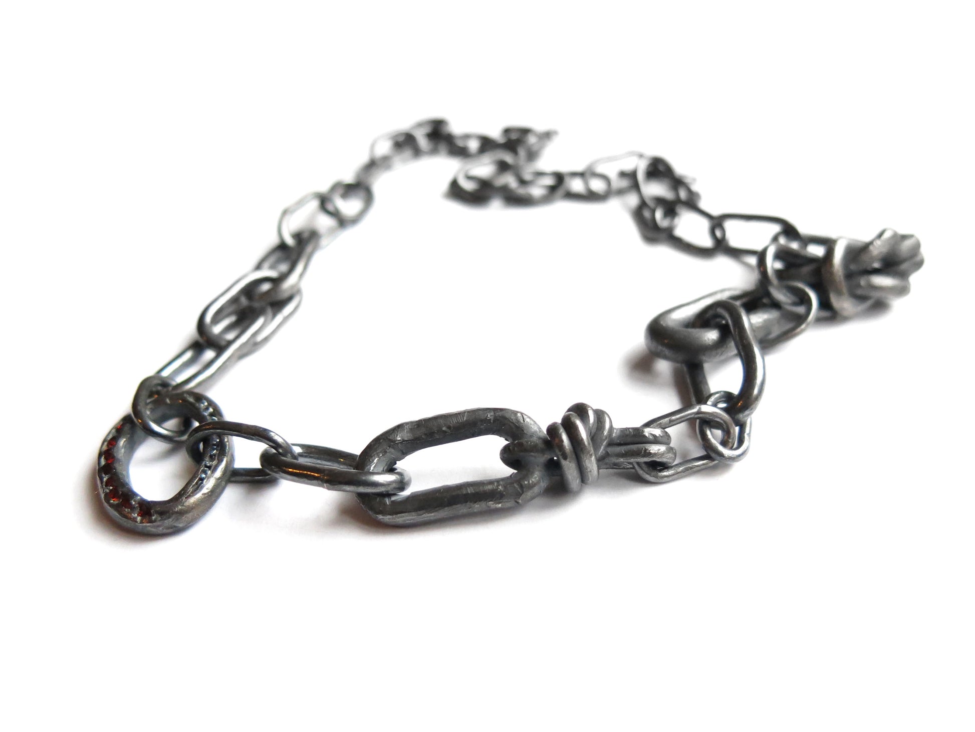 heavy sterling silver chain is made up of a mix of handmade oval links and chunky links with knots that were sculpted in wax and then cast in solid sterling silver anddd one extra special link with a mix of blue sapphires and garnets.