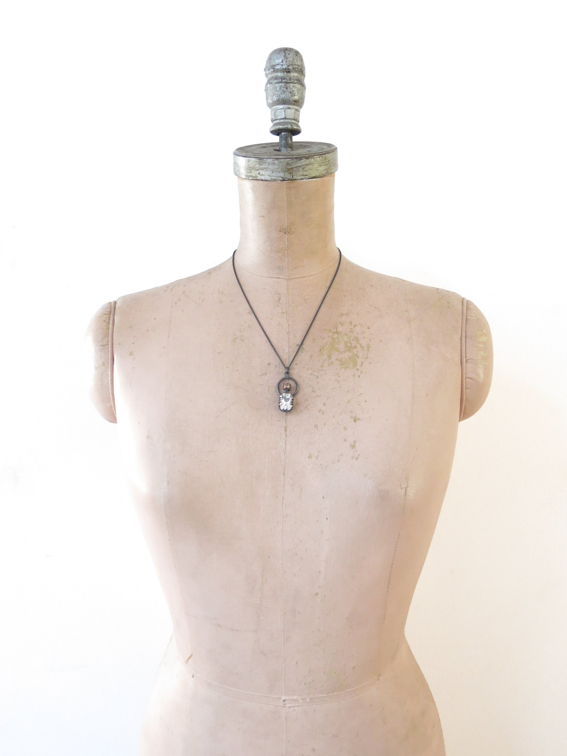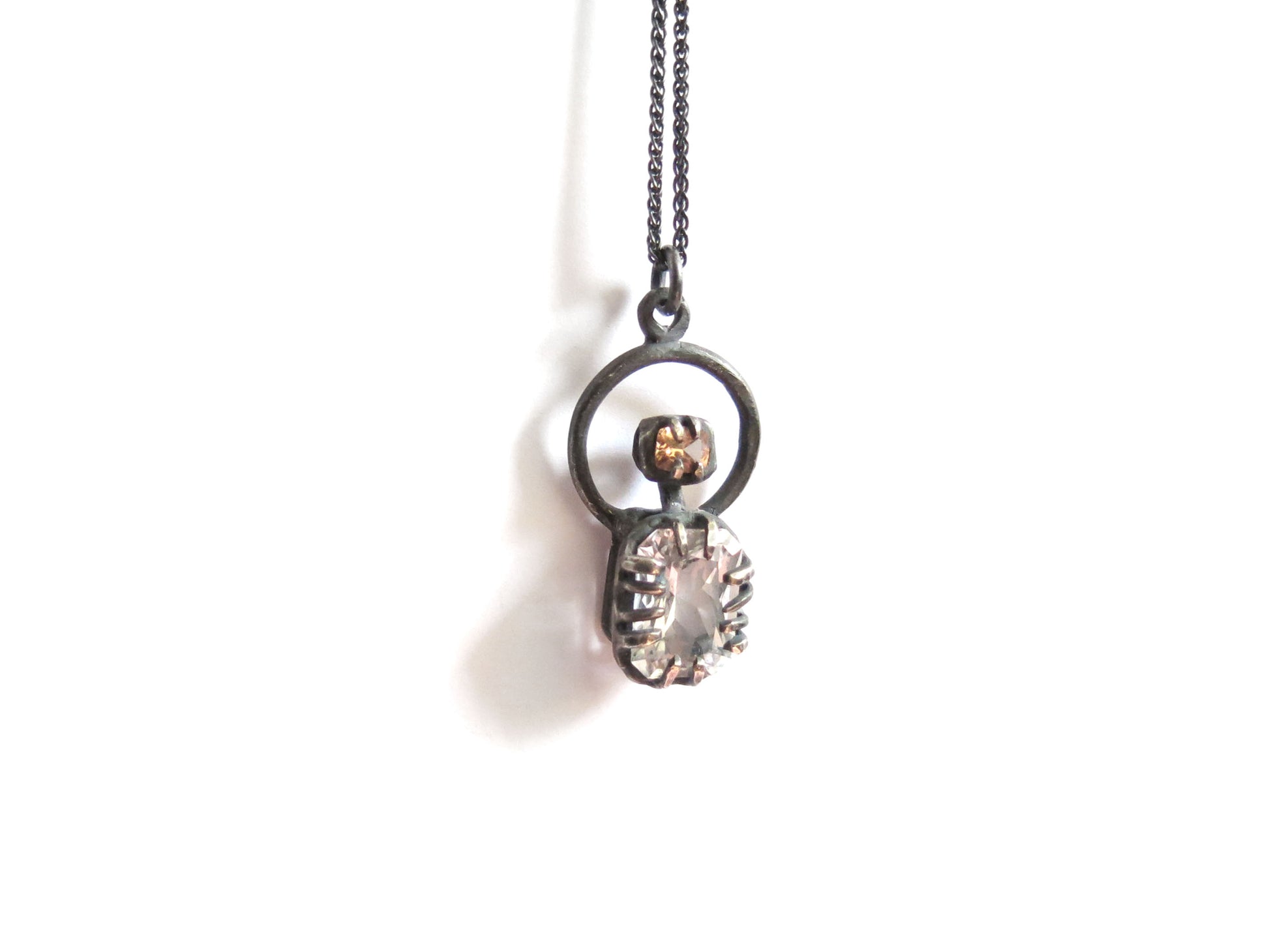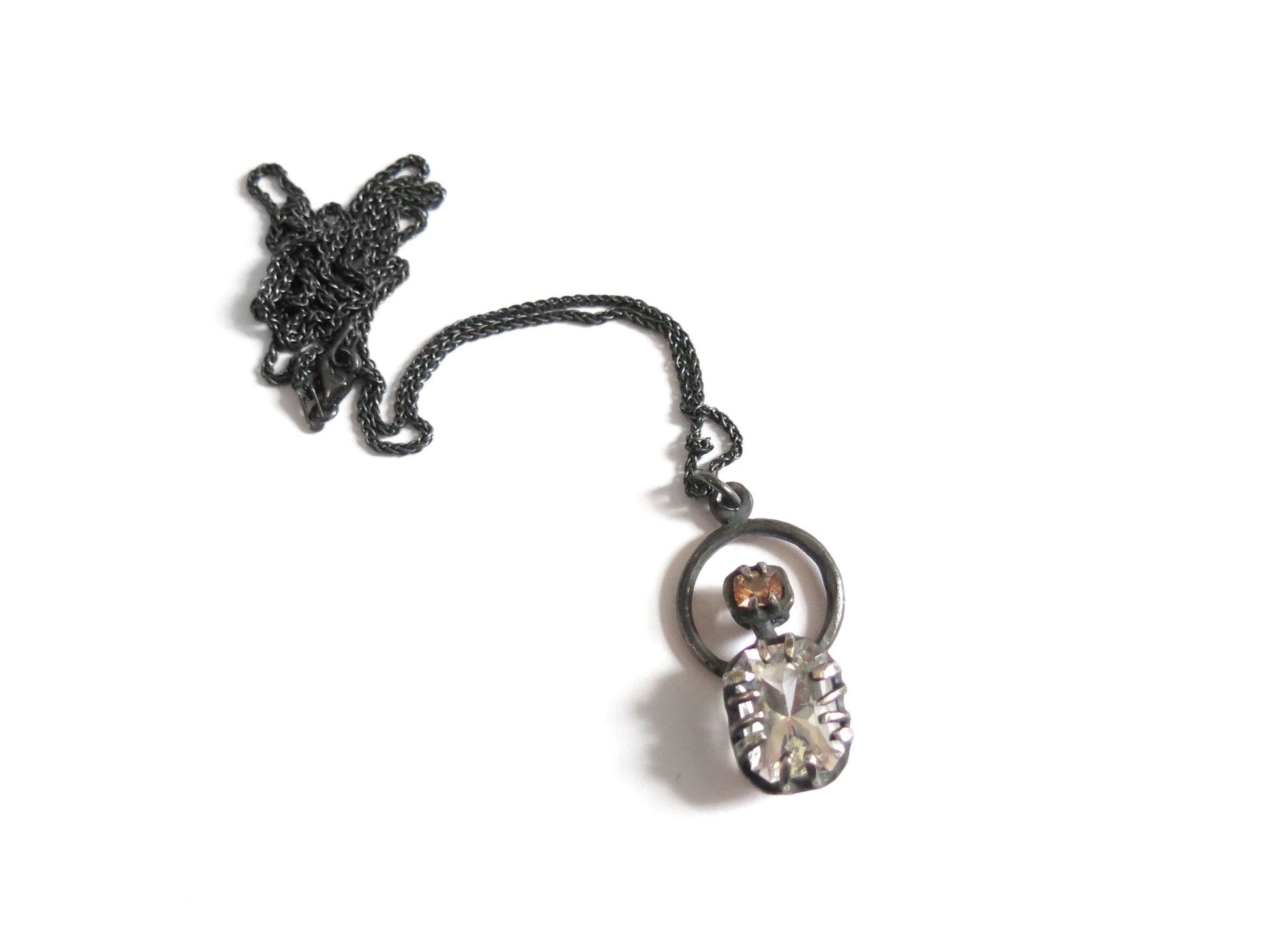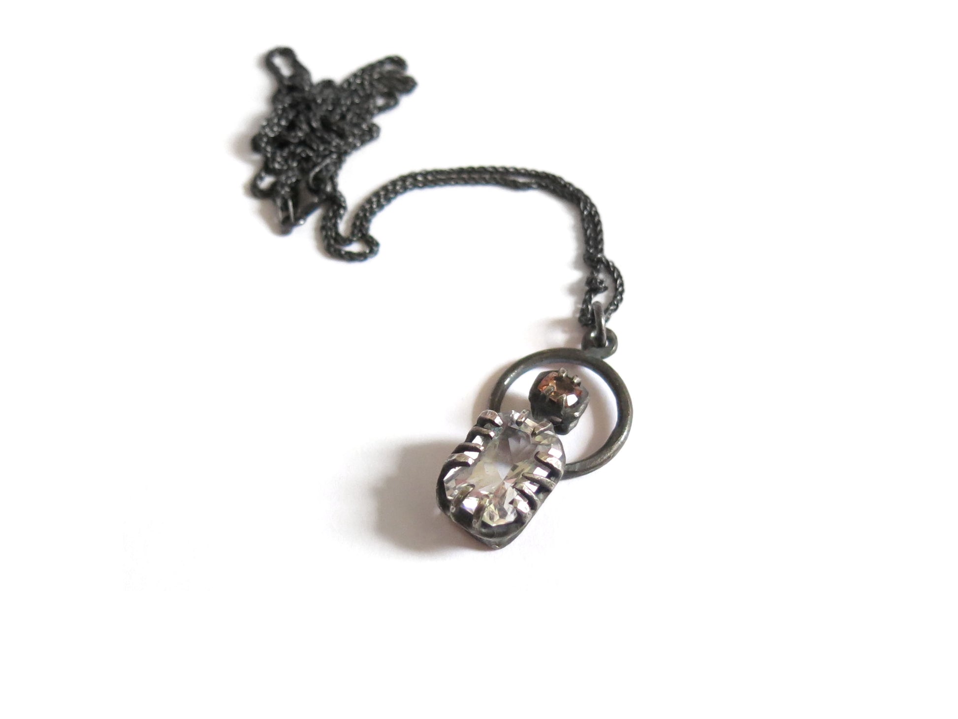 rectangular quartz topped with a little orange topaz, cast in solid sterling silver with a rough oxidized finish. oxidized silver will evolve and become brighter and shinier.
