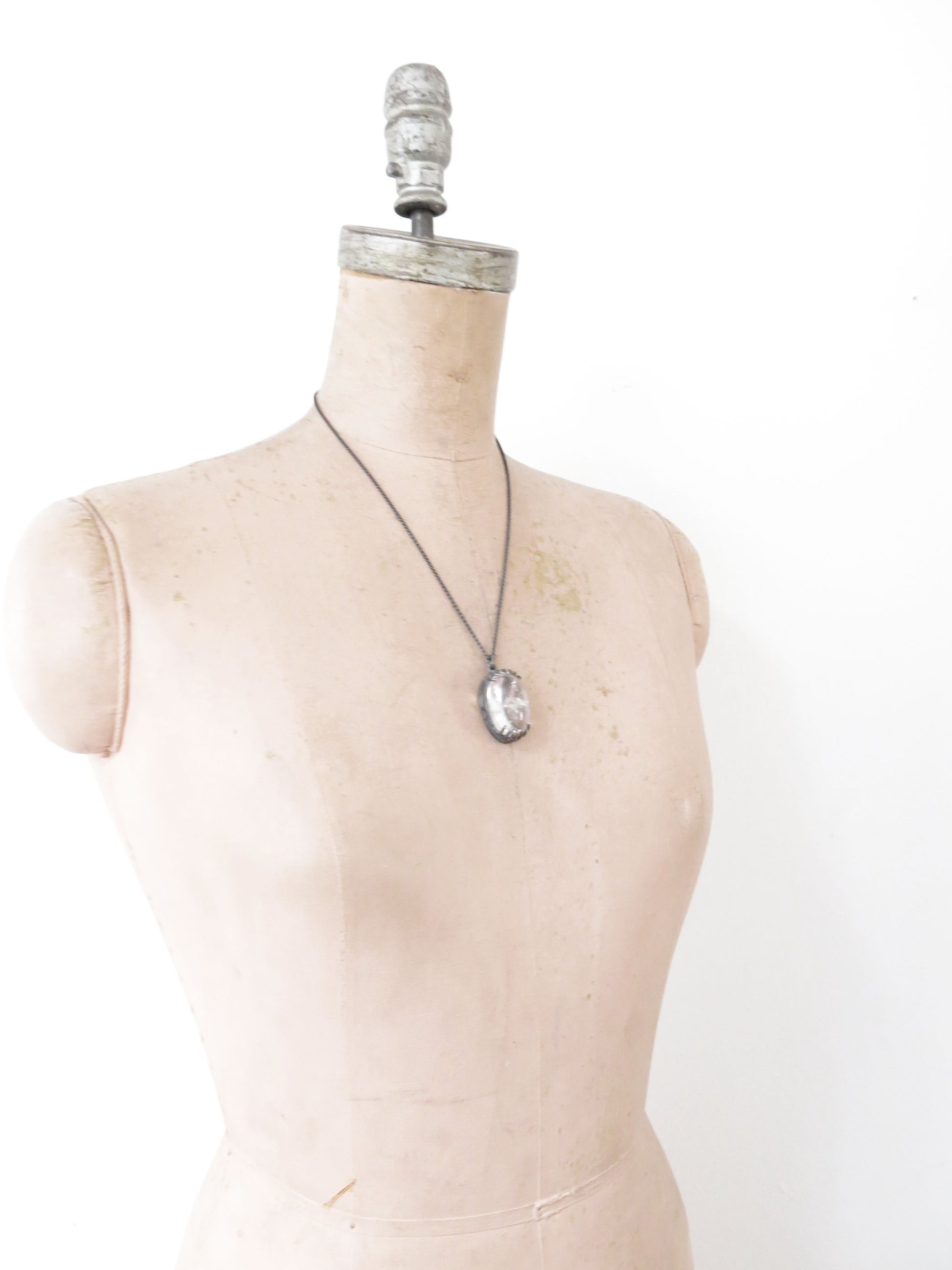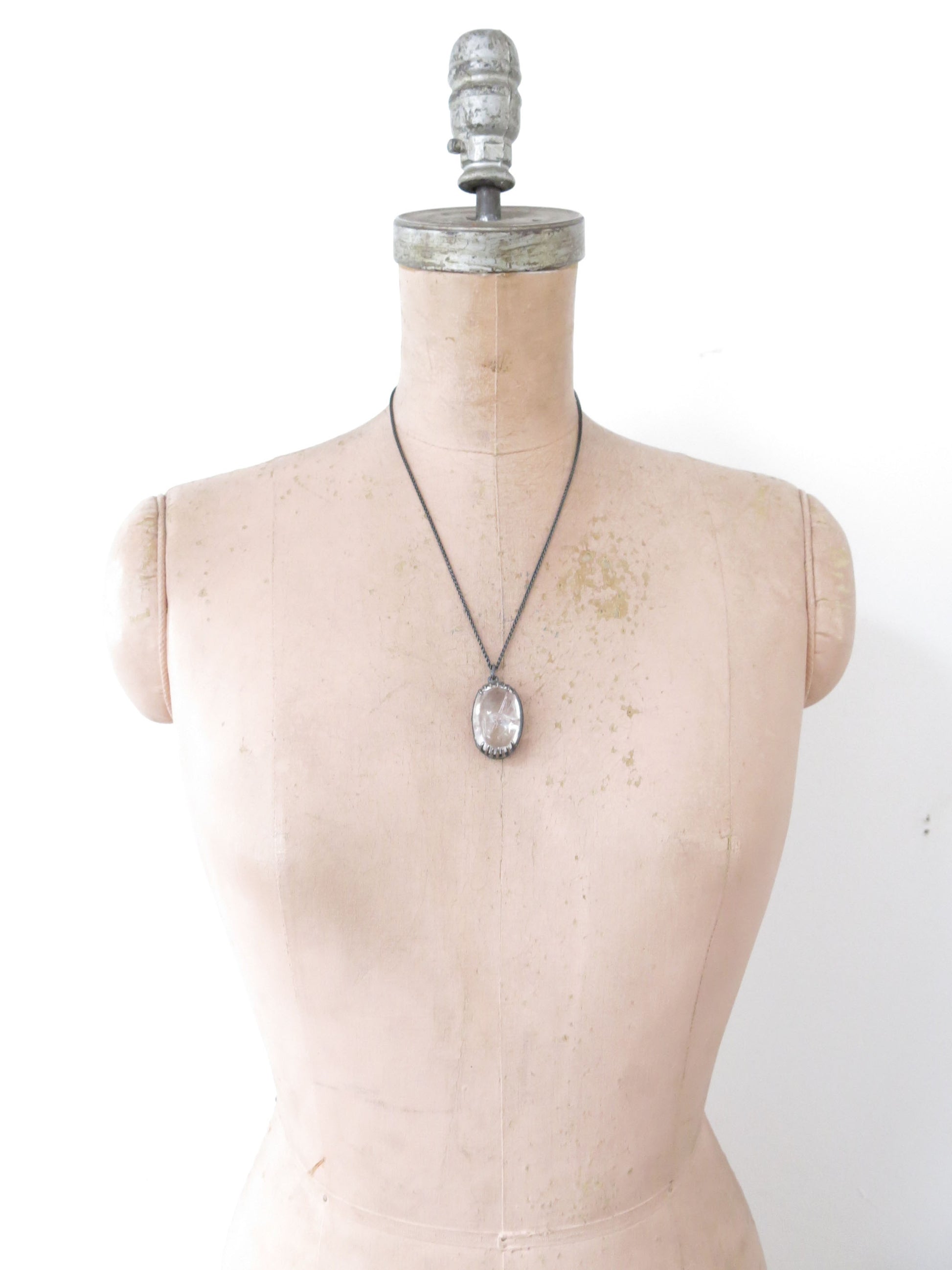 oxidized silver will evolve and become brighter and shinier with wear. comes on a 20" sterling silver chain. this pendant is one of a kind. please be kind to your crystal.