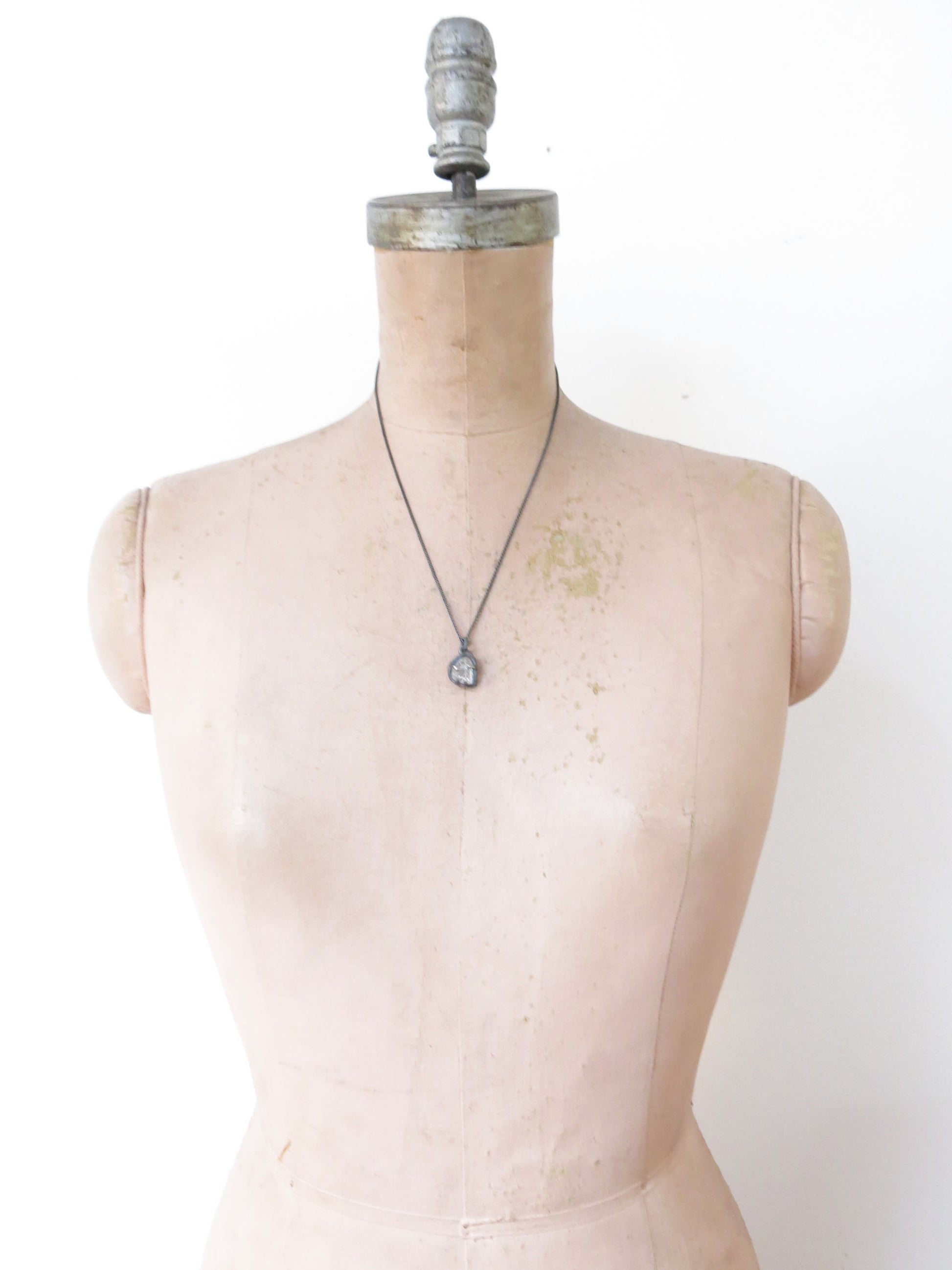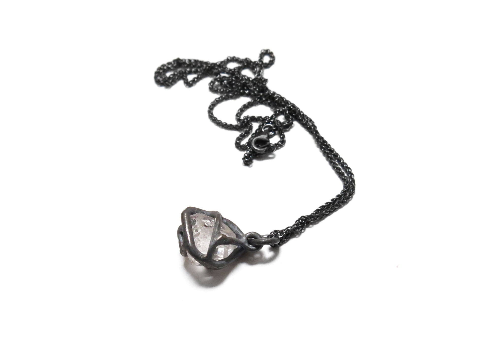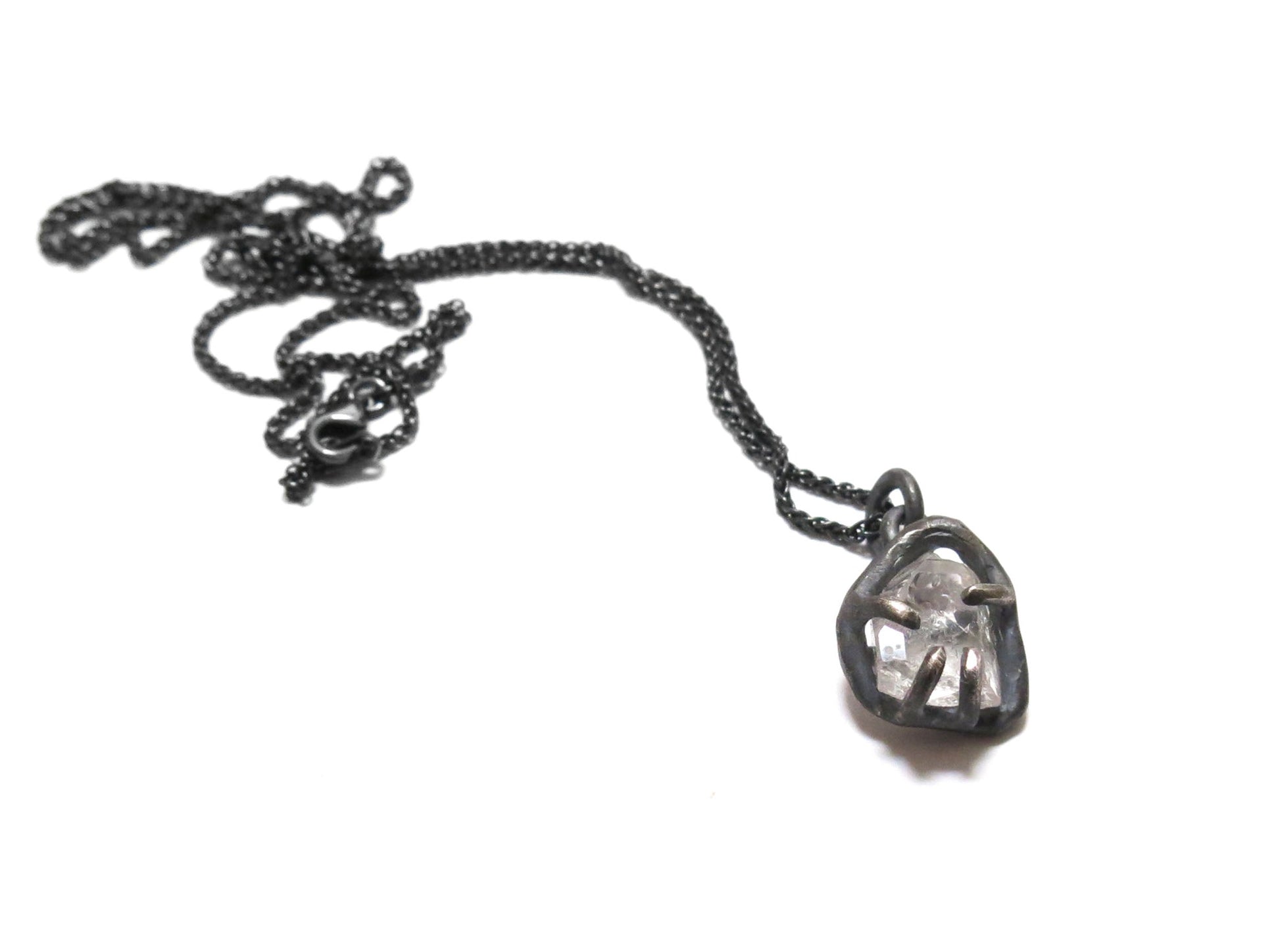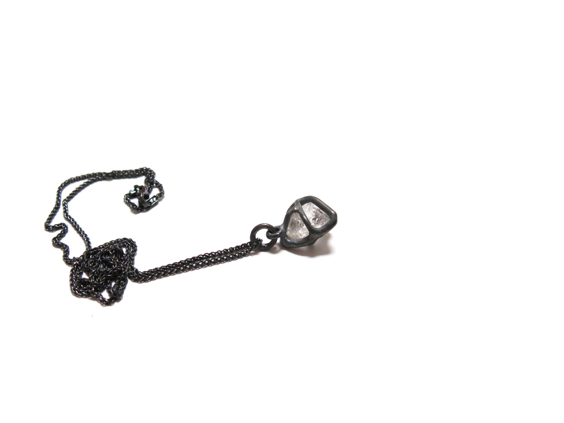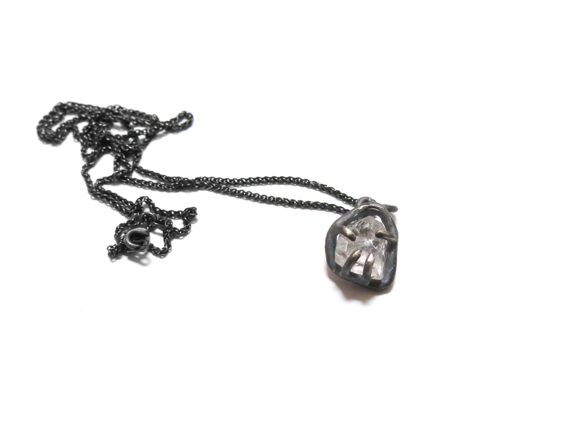 a little rough topaz set in sterling silver. oxidized silver will evolve and become brighter and shinier with wear. comes on a 20" sterling silver chain.