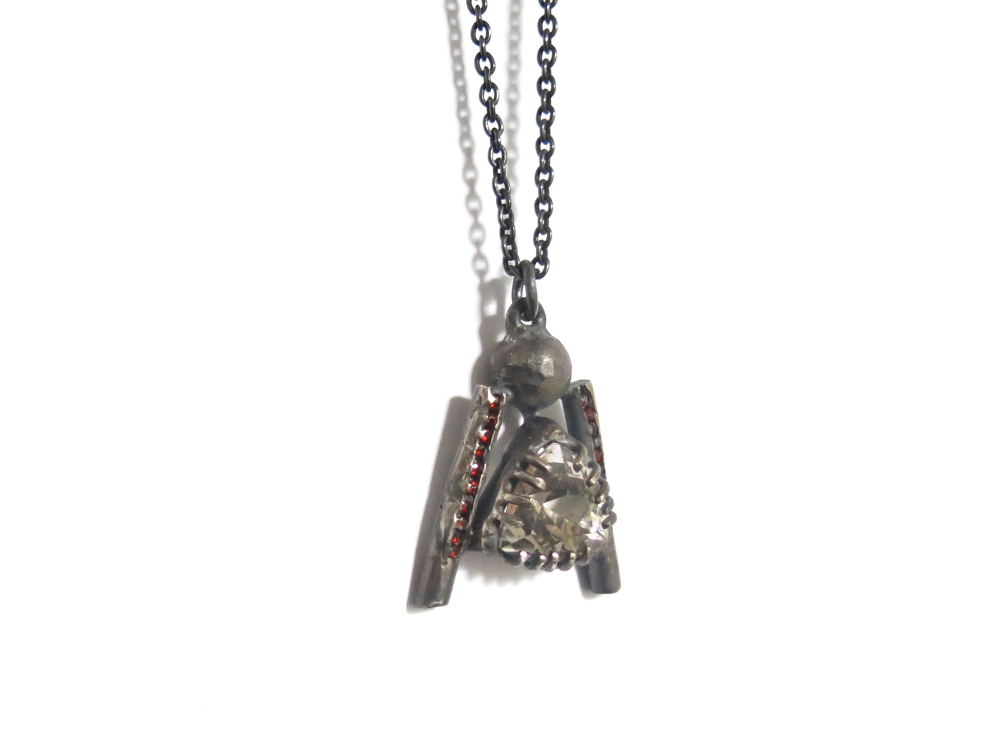 6.62 carat triangular smokey quartz from emerald lake, yukon & 17 little garnets on sterling silver. oxidized silver will evolve and become brighter and shinier with wear.