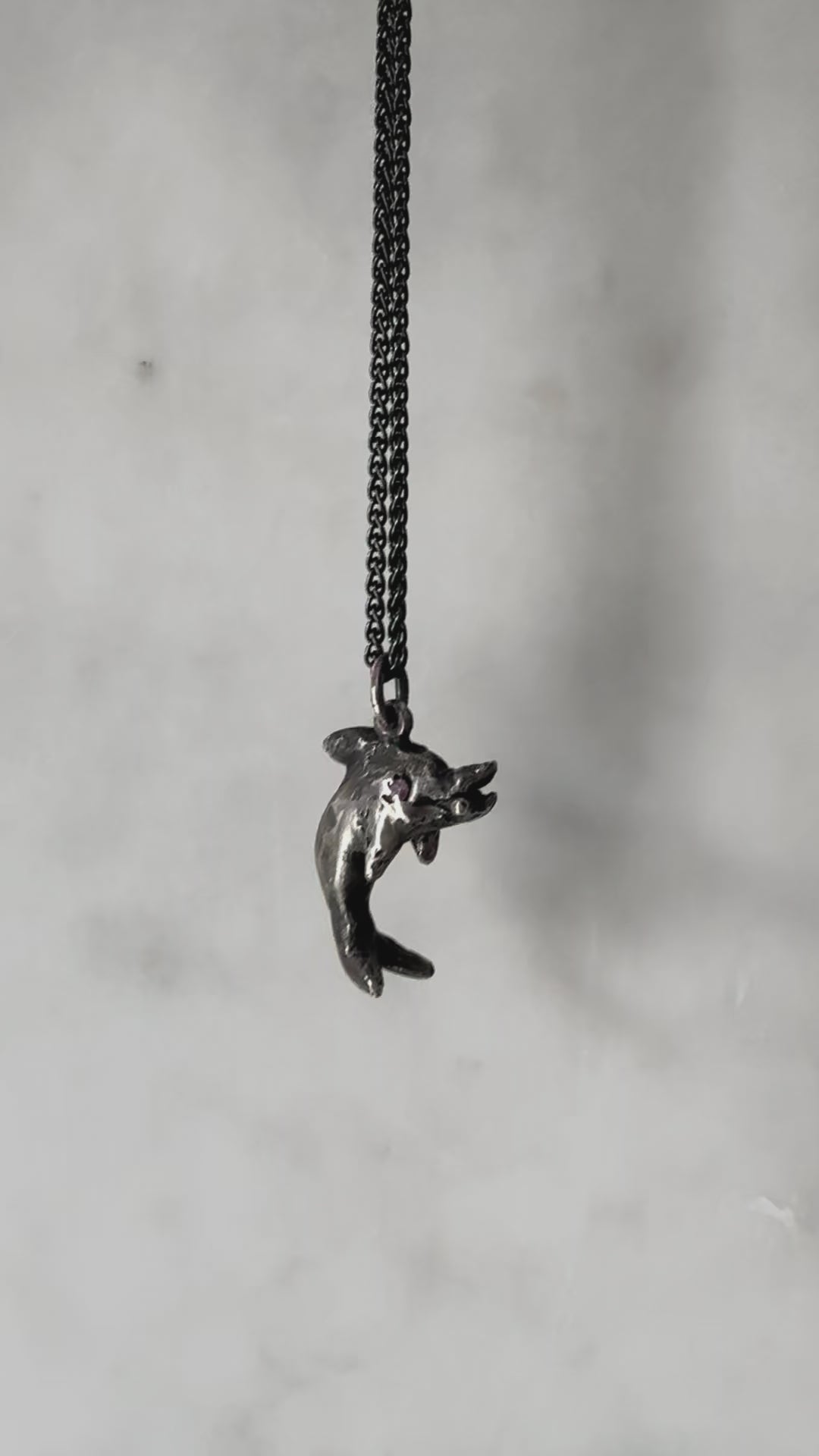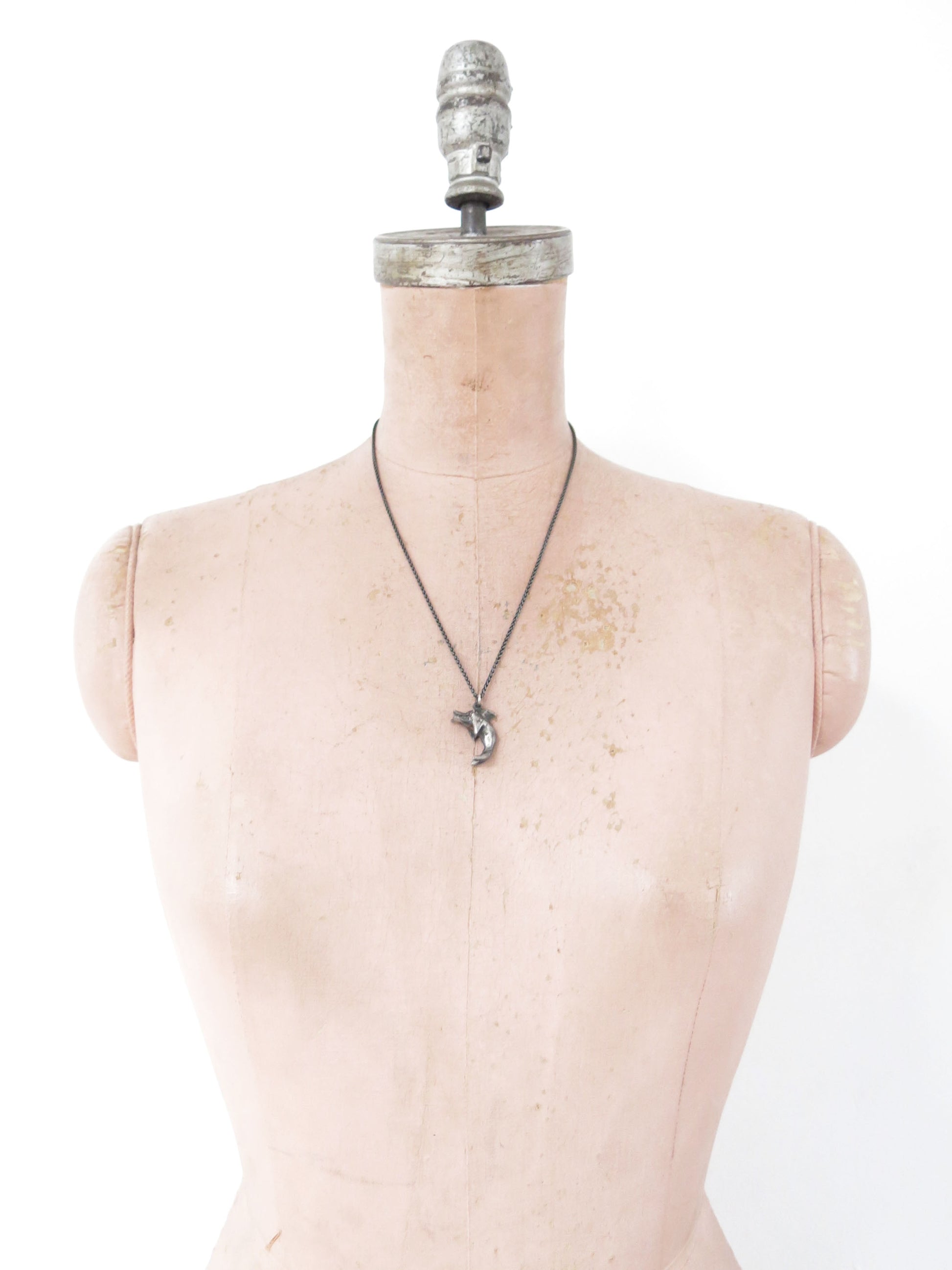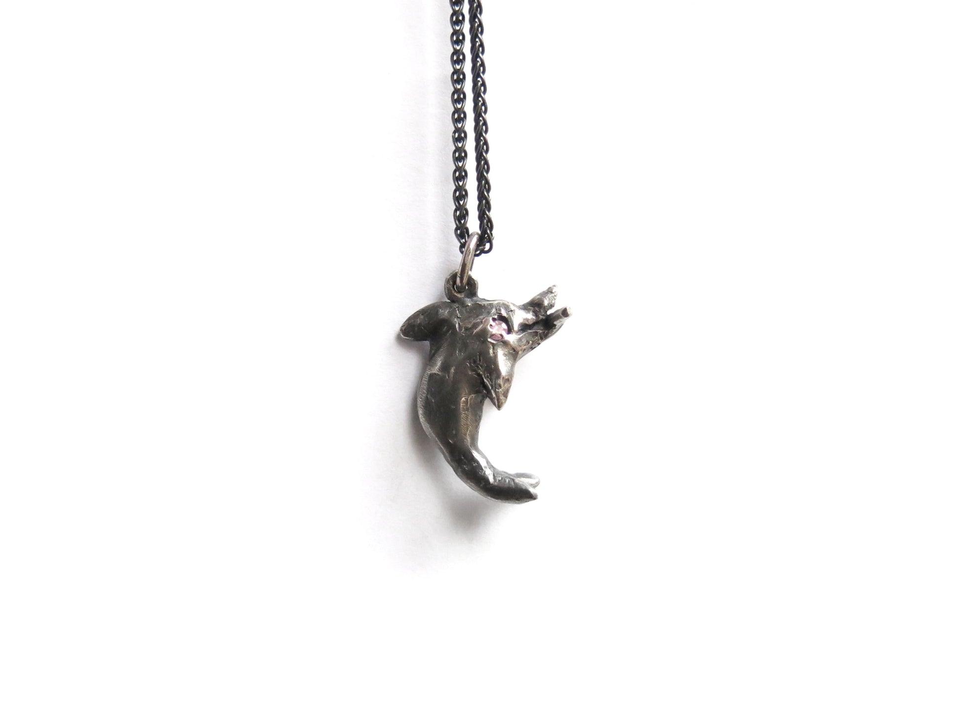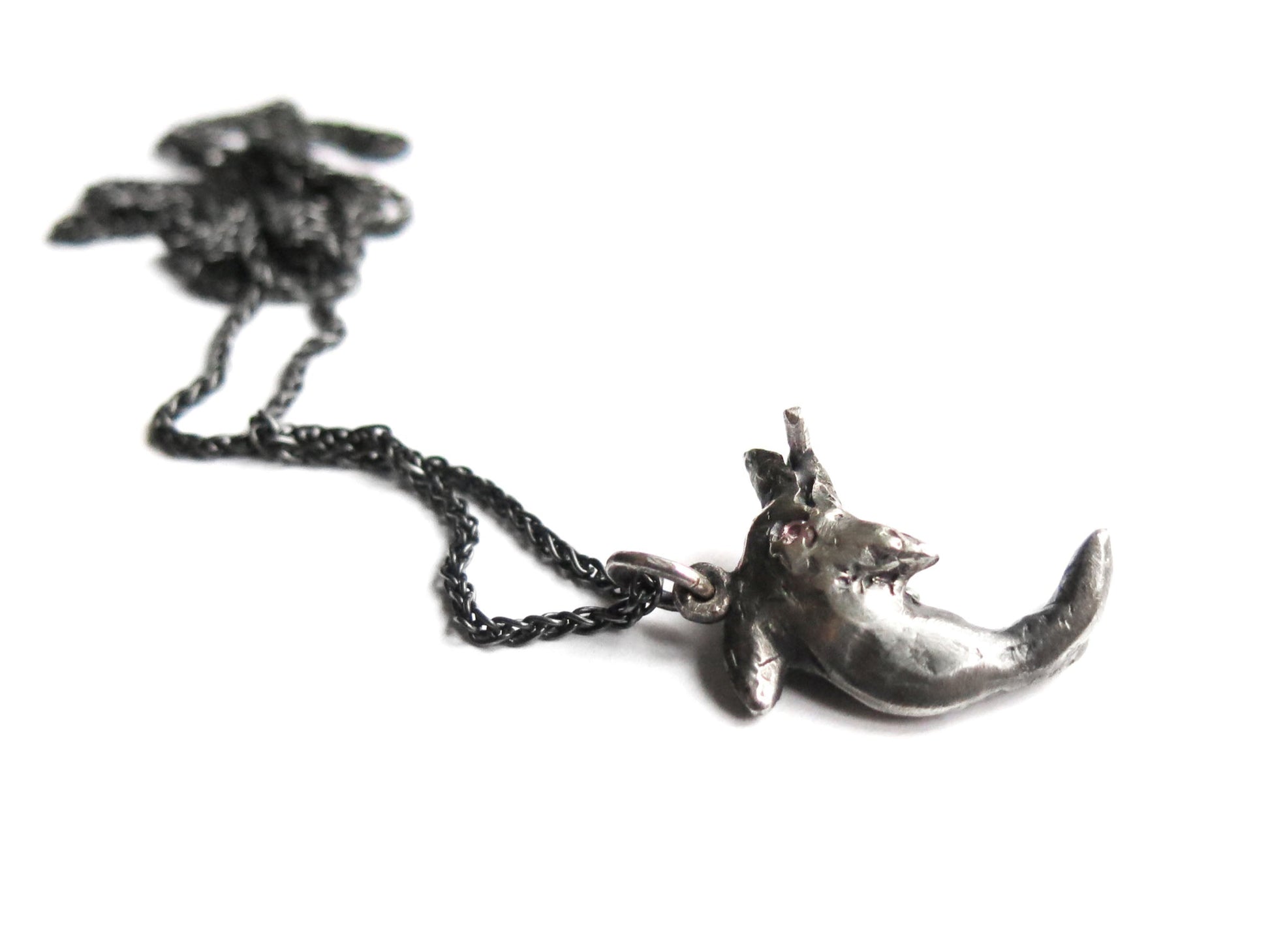 sculpted in wax and cast in solid sterling silver. darkened oxidized silver will evolve with wear and become brighter and shinier. comes on a 20" sterling silver chain.