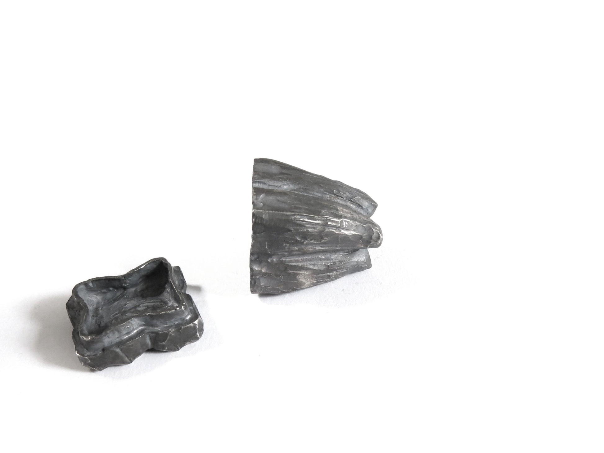 a box for baby teeth or other teeth, in the shape of a tooth. solid sterling silver. each tooth box is individually made and one of a kind. oxidized silver will become brighter and shinier with use.