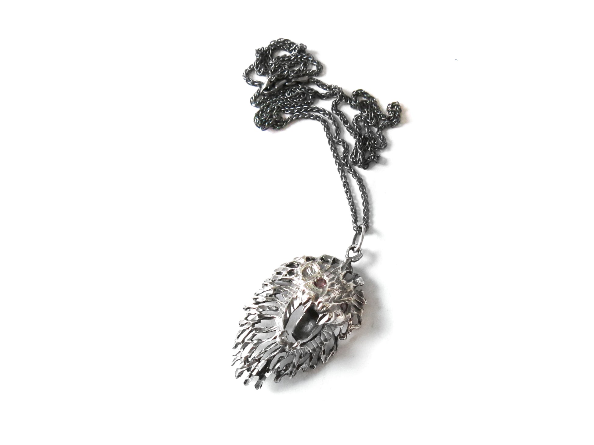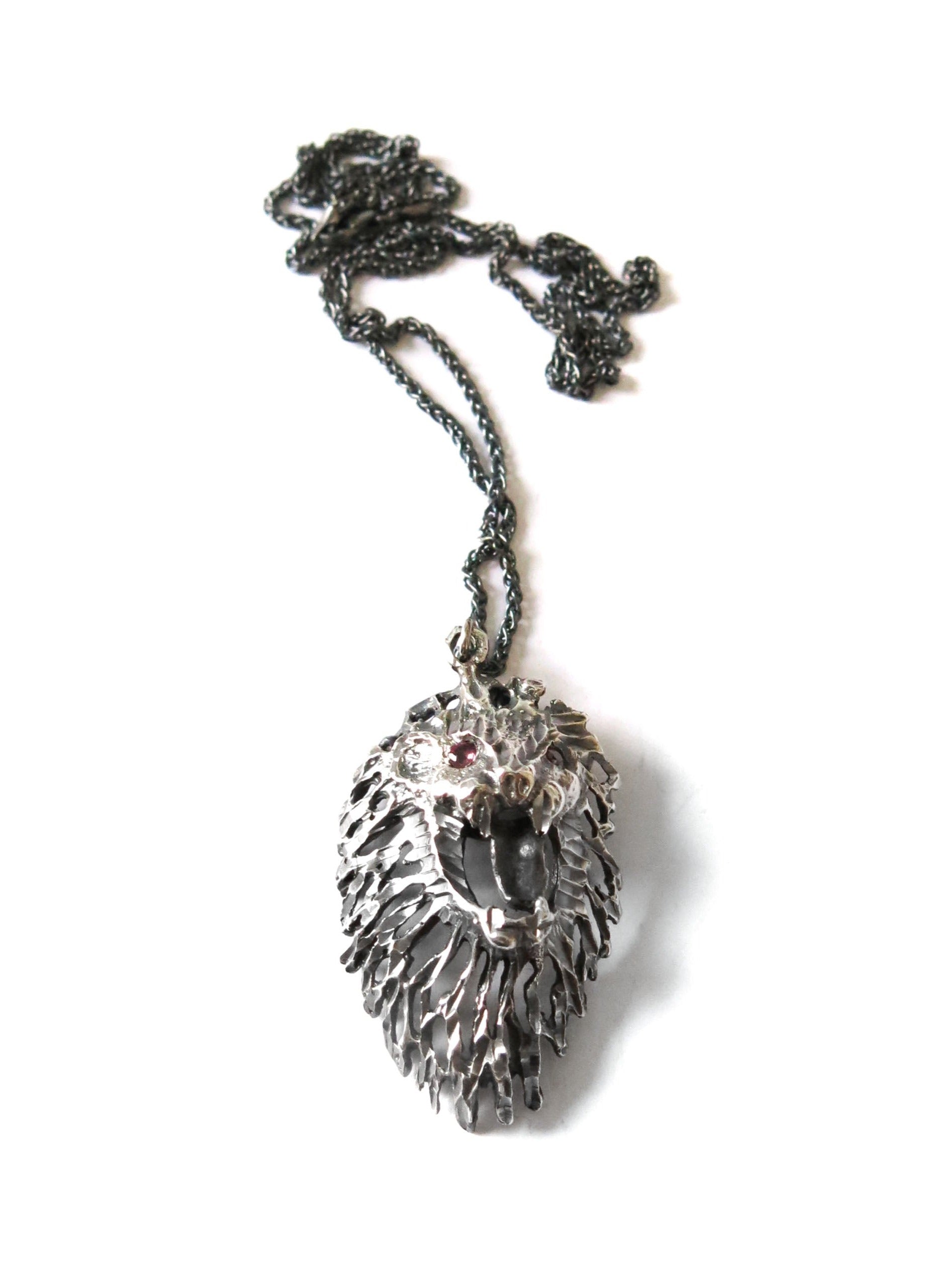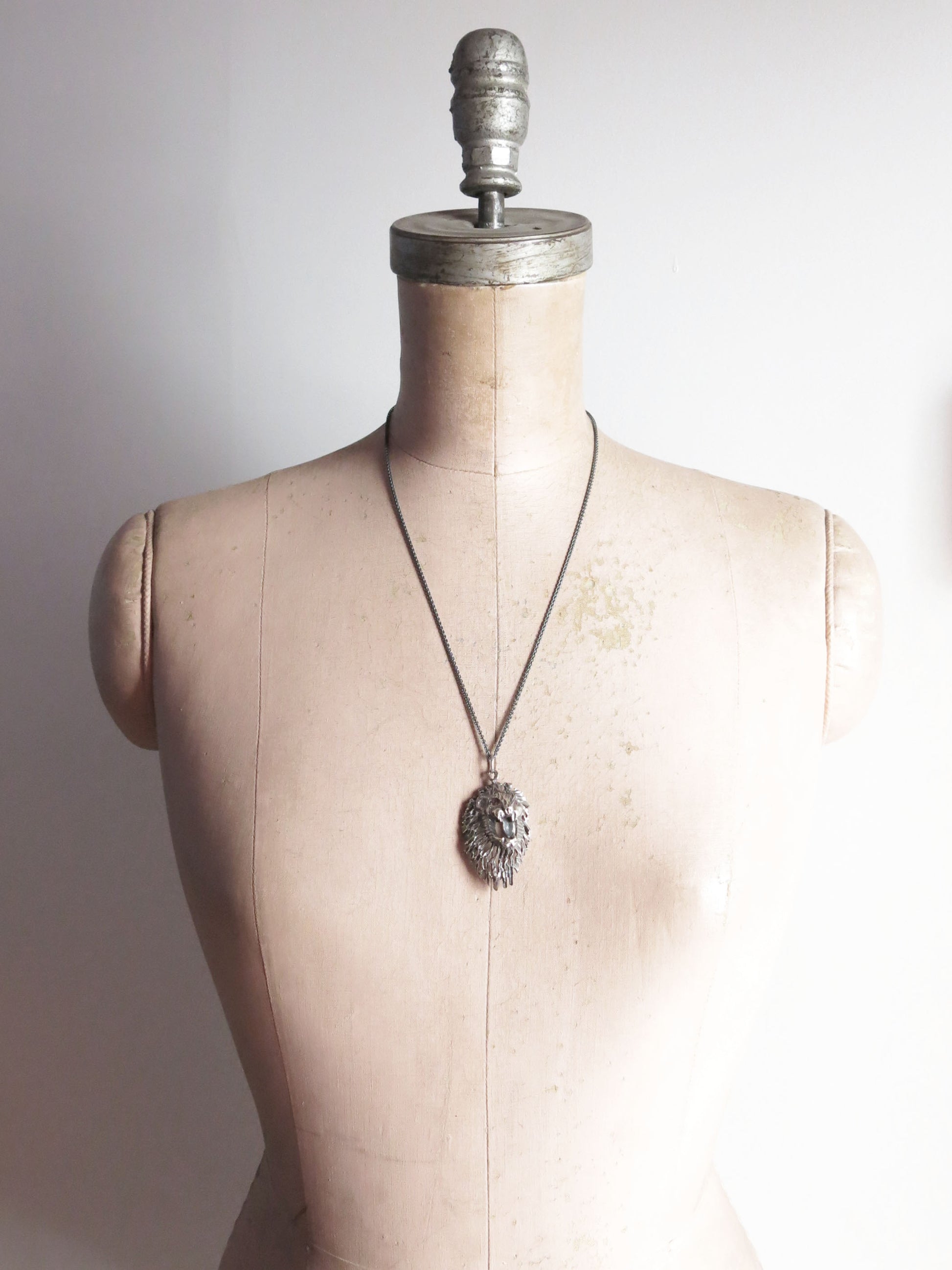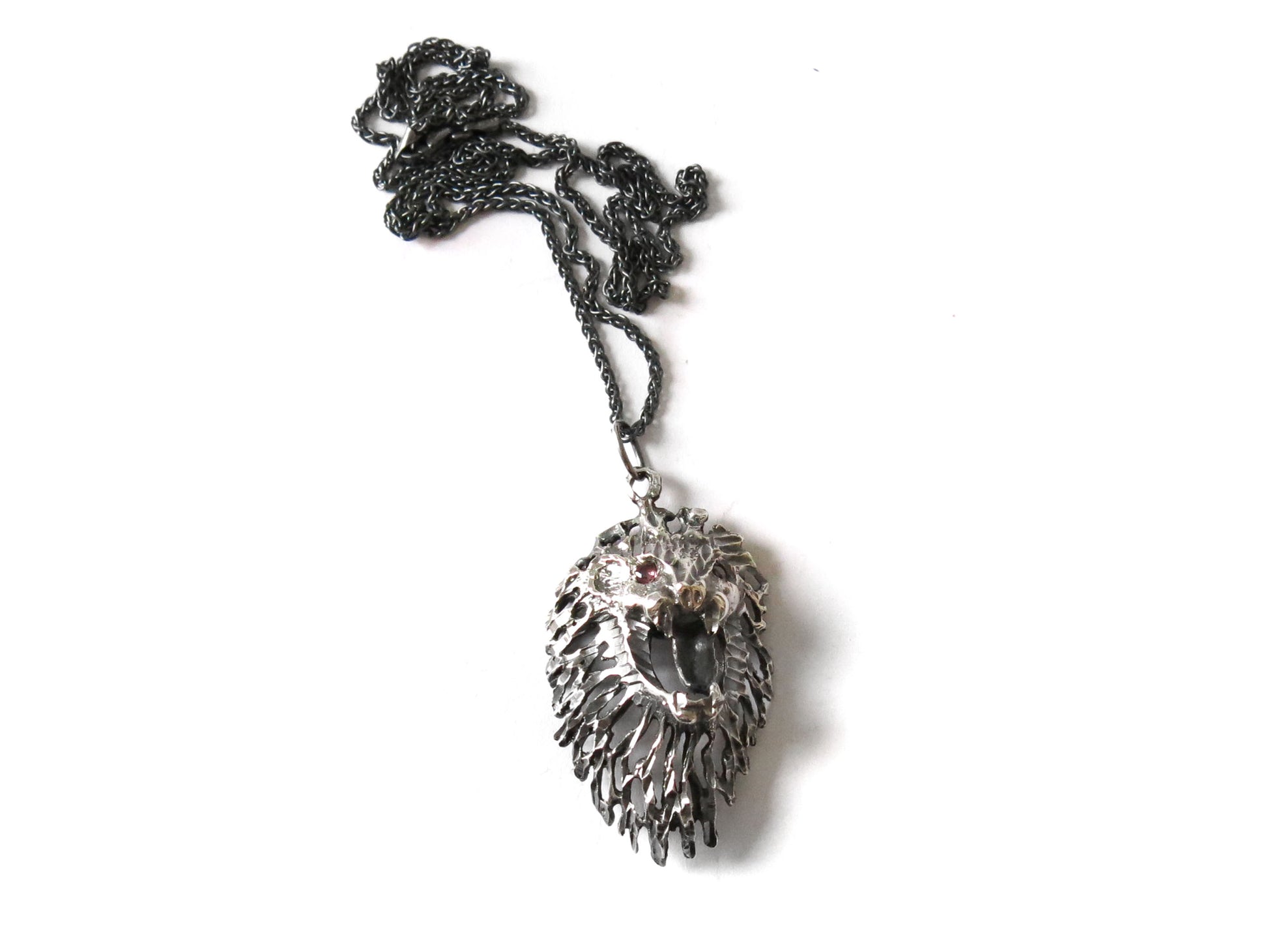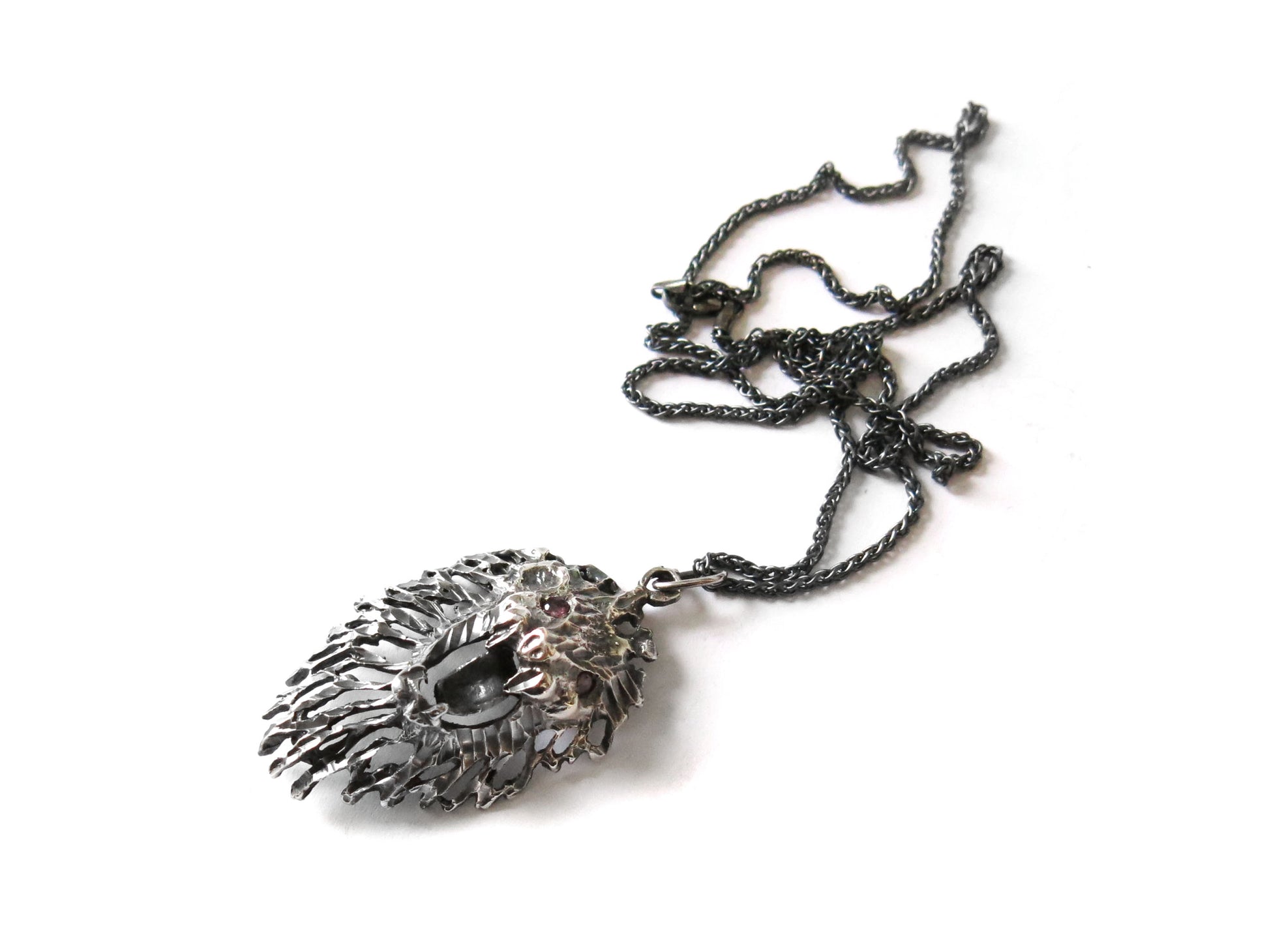 big sterling silver vintage lion head pendant with pinkish purple faceted gemstone eyes. comes on a new 24" sterling silver chain. please add a note in your order if you would like a shorter chain instead, available lengths are 16", 18" and 20".